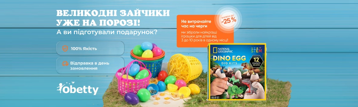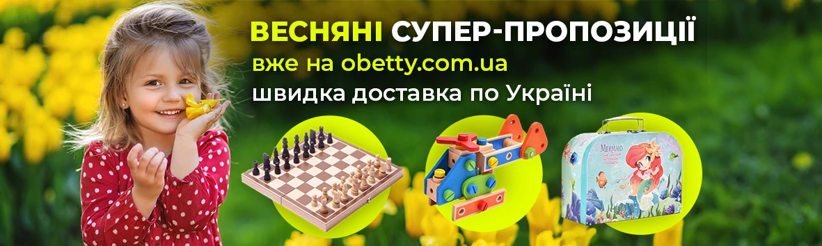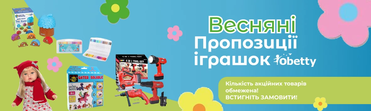 Для кожного спеціаліста інтернет-магазину Obetty продаж іграшок – це не просто робота, а важлива місія: порадувати дітей цікавими та корисними подарунками, а батьків – якісним товаром та професійним обслуговуванням. Наш магазин іграшок по праву називається національним, адже оформити замовлення можуть усі жителі України за наявності доступу до Інтернету. Ми пропонуємо зручний та простий шопінг, який відрізняється від відвідування звичайного магазину великим комфортом, адже покупку можна зробити вдома, переглянути фото всіх товарів у каталозі, прочитати опис та відгуки, порівняти ціни. Мешканців Києва запрошуємо забрати покупку на нашому складі, для покупців із інших українських міст можлива доставка.
