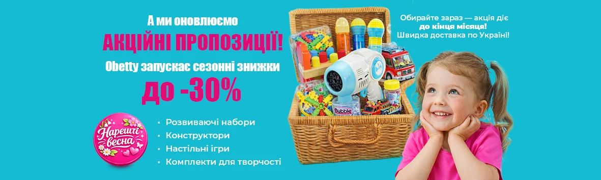 Наші досягнення – це асортимент іграшок, який постійно оновлюється, зручний сервіс та тисячі задоволених клієнтів, які стають добрими друзями магазину Obetty.
