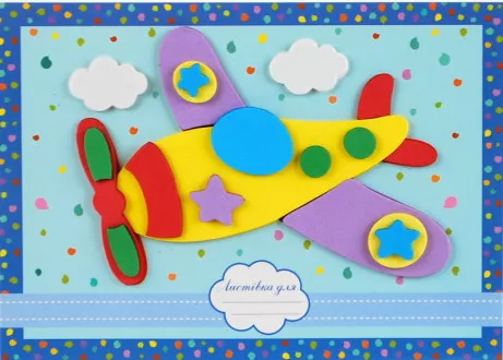 Все мы знаем об удовольствии не только получать подарки, но и дарить их близким! Именно такую возможность и предоставляет маленьким творцам этот набор, ведь с его помощью малыш сможет создать свою первую аппликацию-открытку. При этом, выполнять работу будет максимально просто: на картонной основе уже нанесён контур, на который вам нужно будет всего лишь подклеивать нужные мягкие детали! Ну и конечно, в конце открытку можно подписать! Создание такого самолётика отлично разовьёт мелкую моторику и аккуратность ребёнка, сможет научить его усидчивости, а также привьёт любовь к творчеству!
