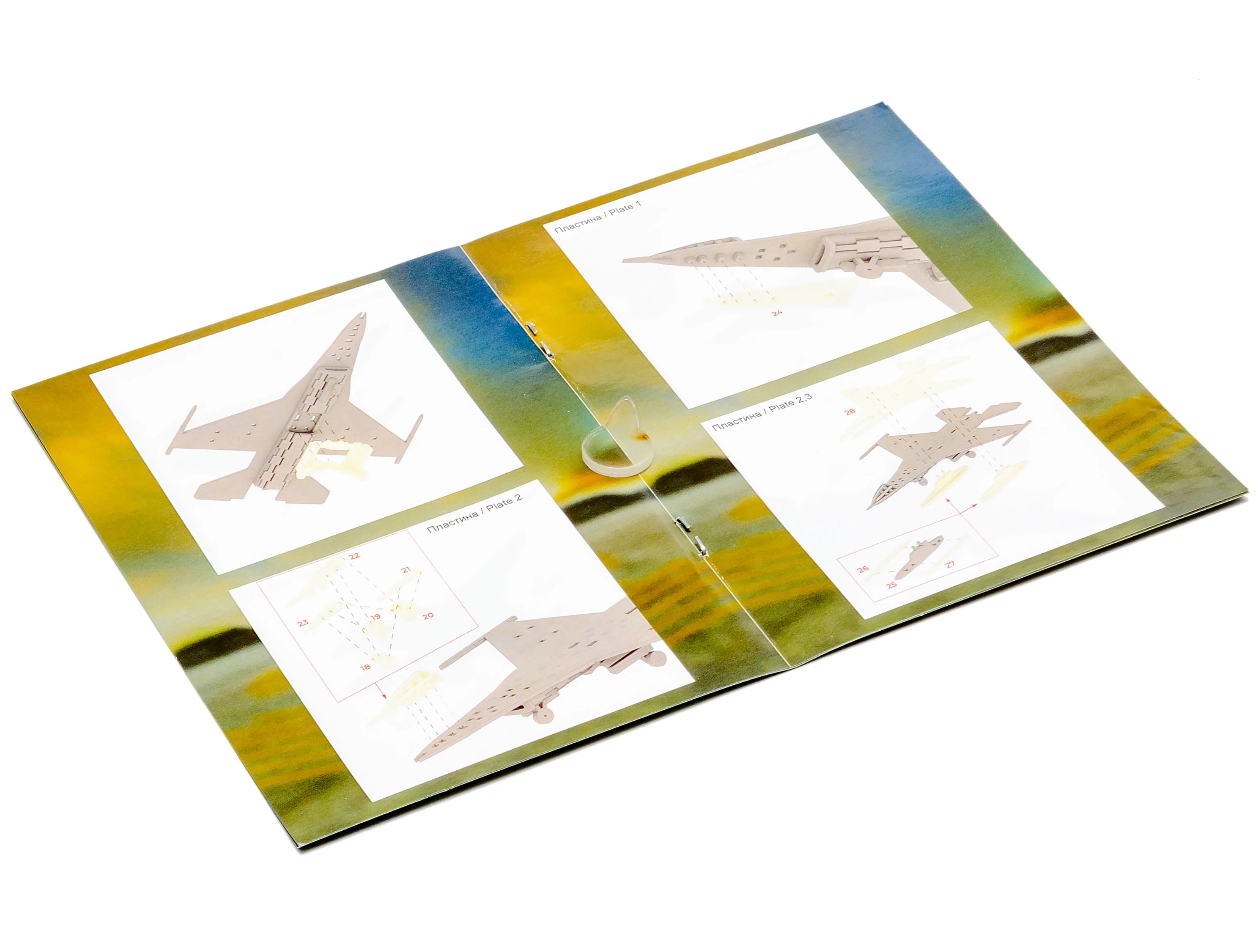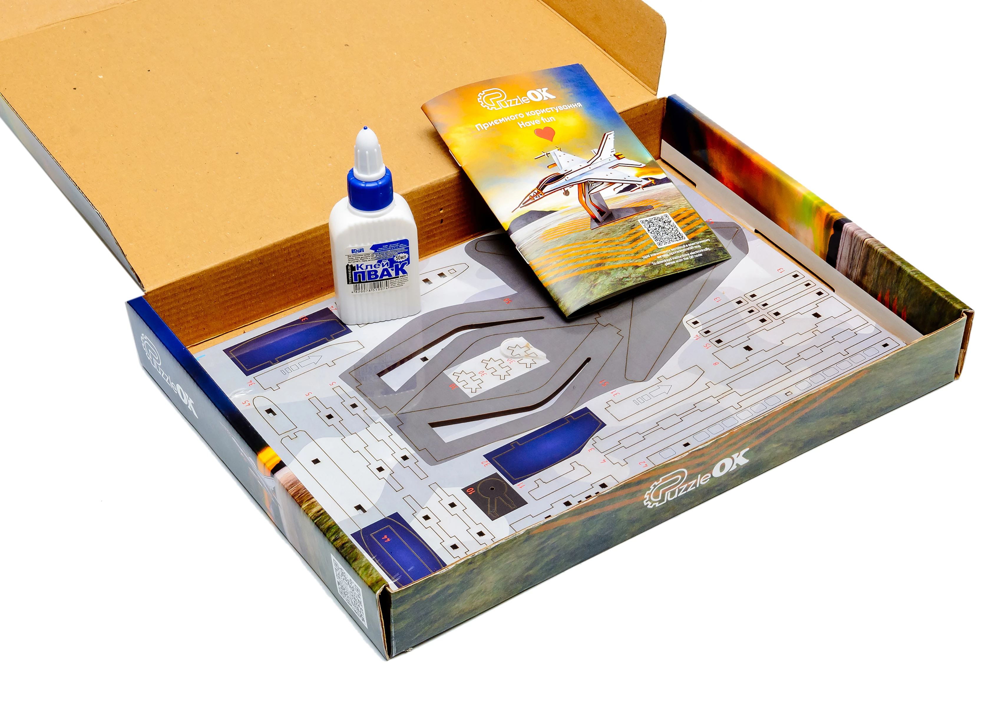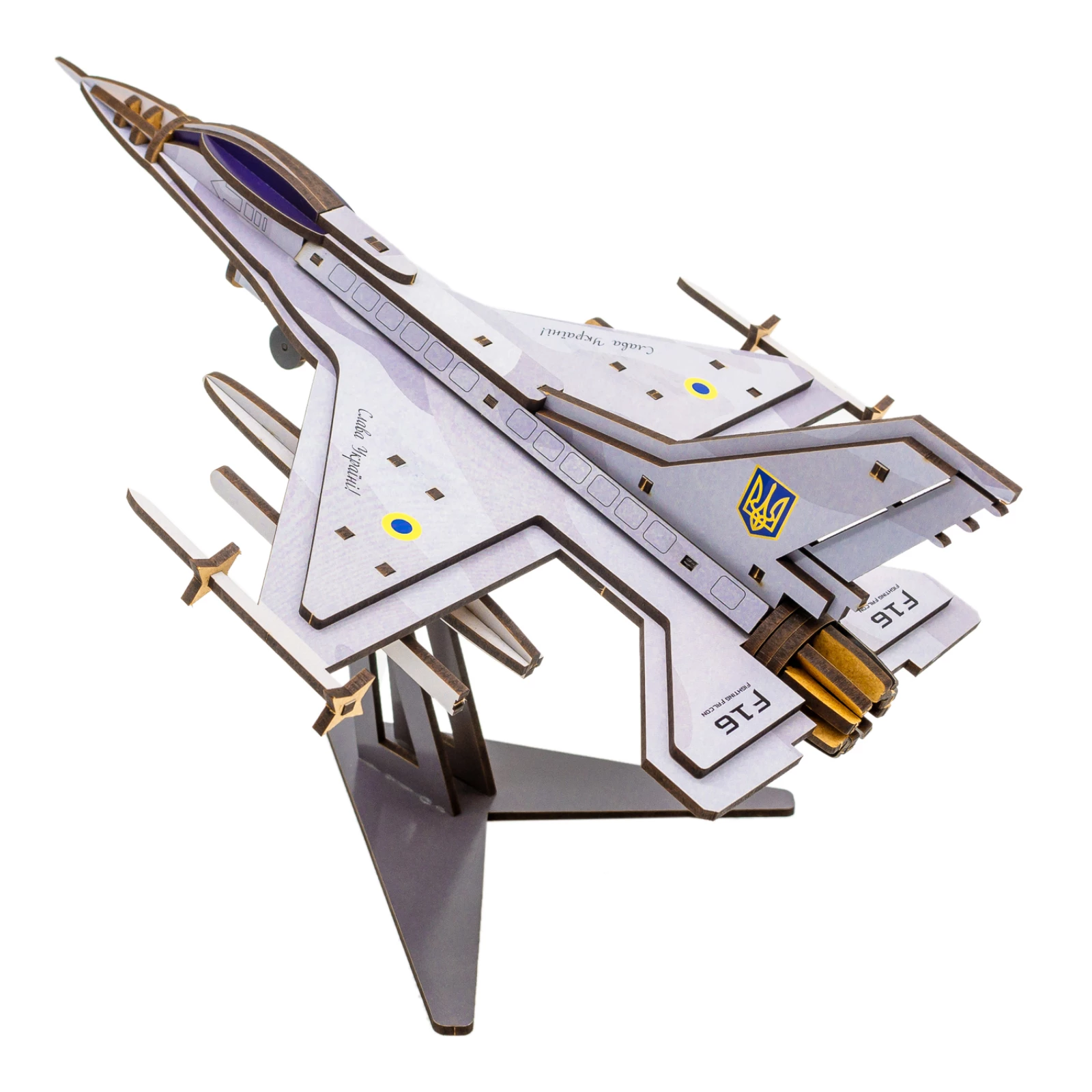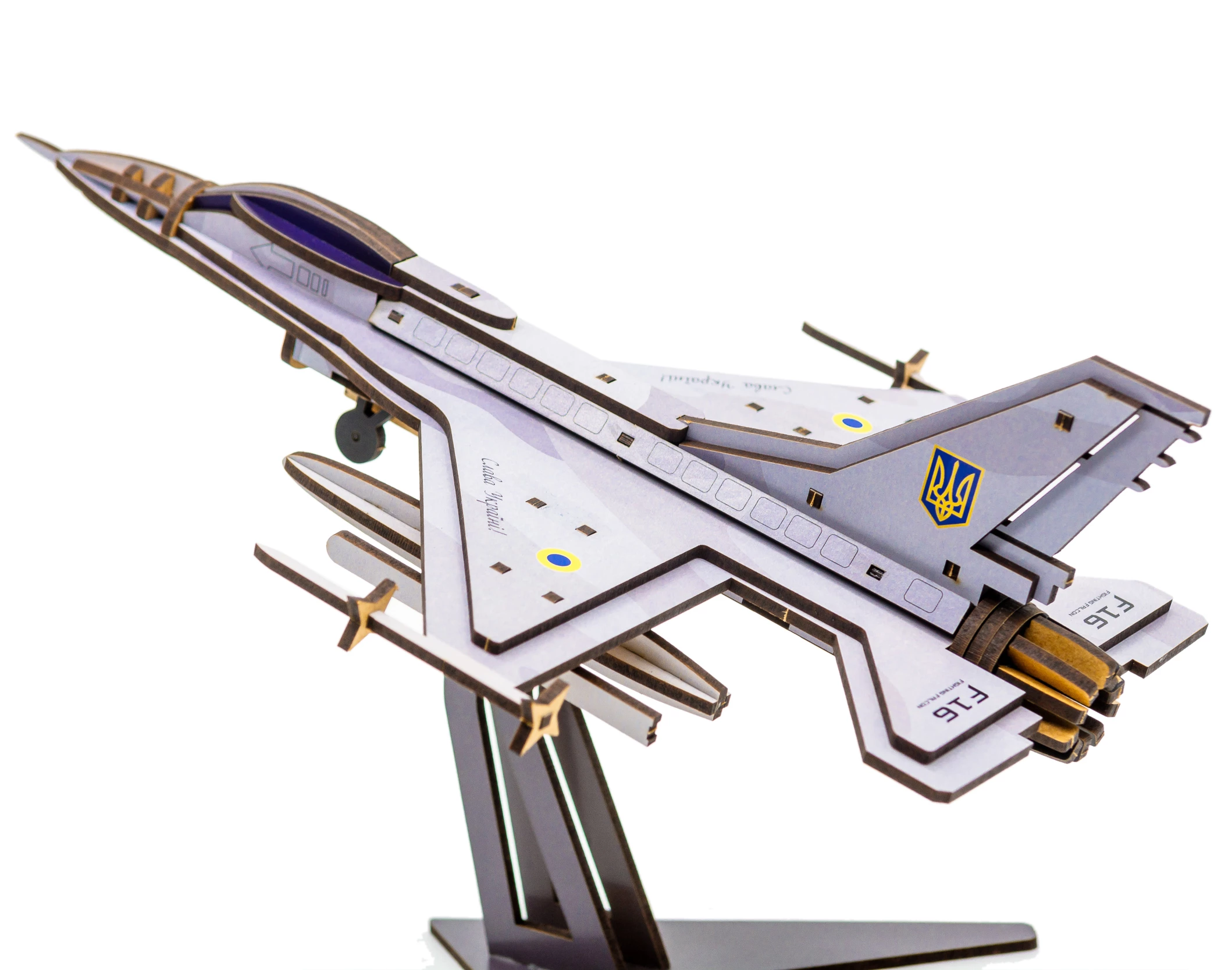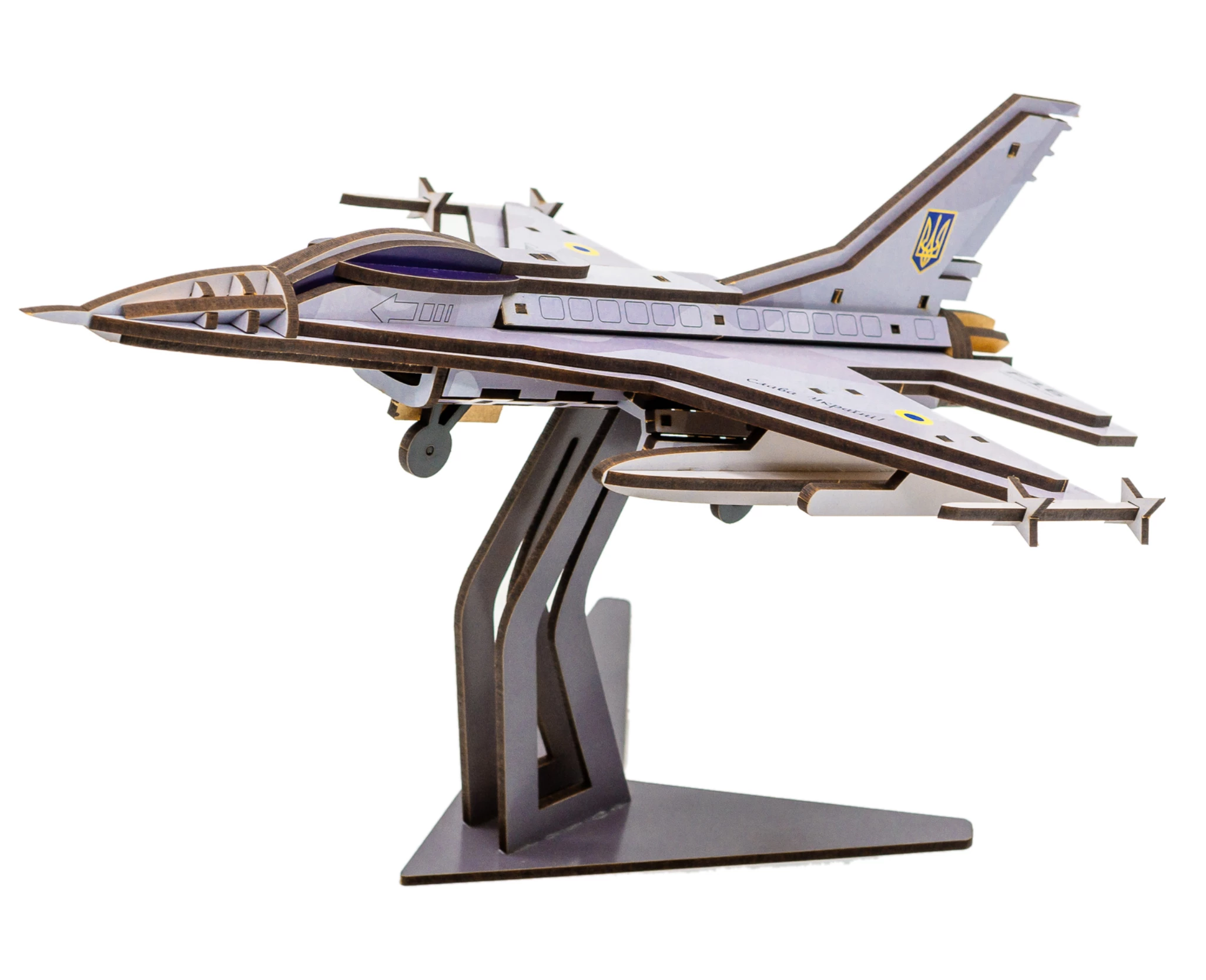 Этот деревянный 3D-конструктор от торговой марки PuzzleOk предназначен для сборки детализированной модели истребителя F-16. Представленный набор состоит из 79 элементов, изготовленных из высококачественной древесины. В комплект входит специальная подставка для размещения готовой модели на горизонтальных поверхностях.