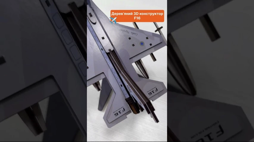 Видео Деревянный 3D-конструктор F16 (79 деталей) от PuzzleOk