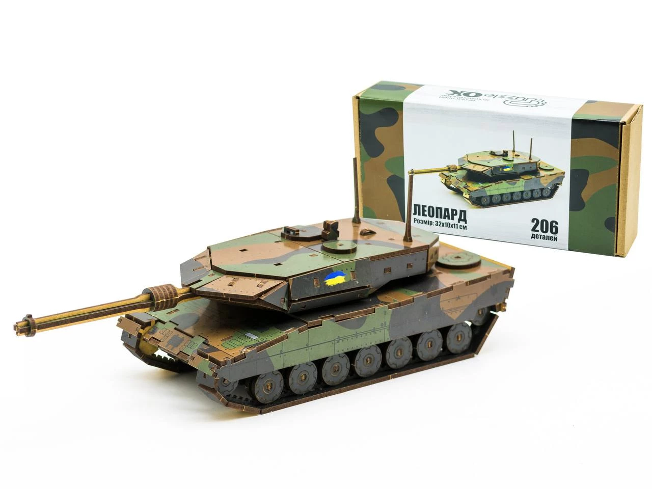 Видео Деревянный 3D-конструктор Танк Леопард (206 деталей) от PuzzleOk