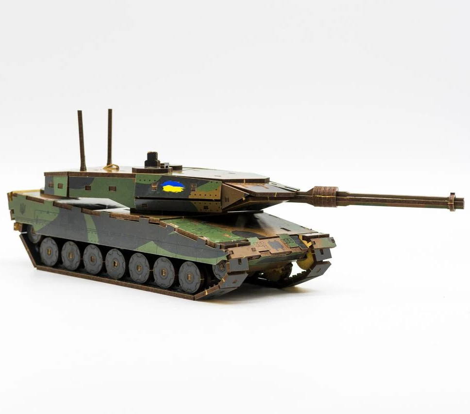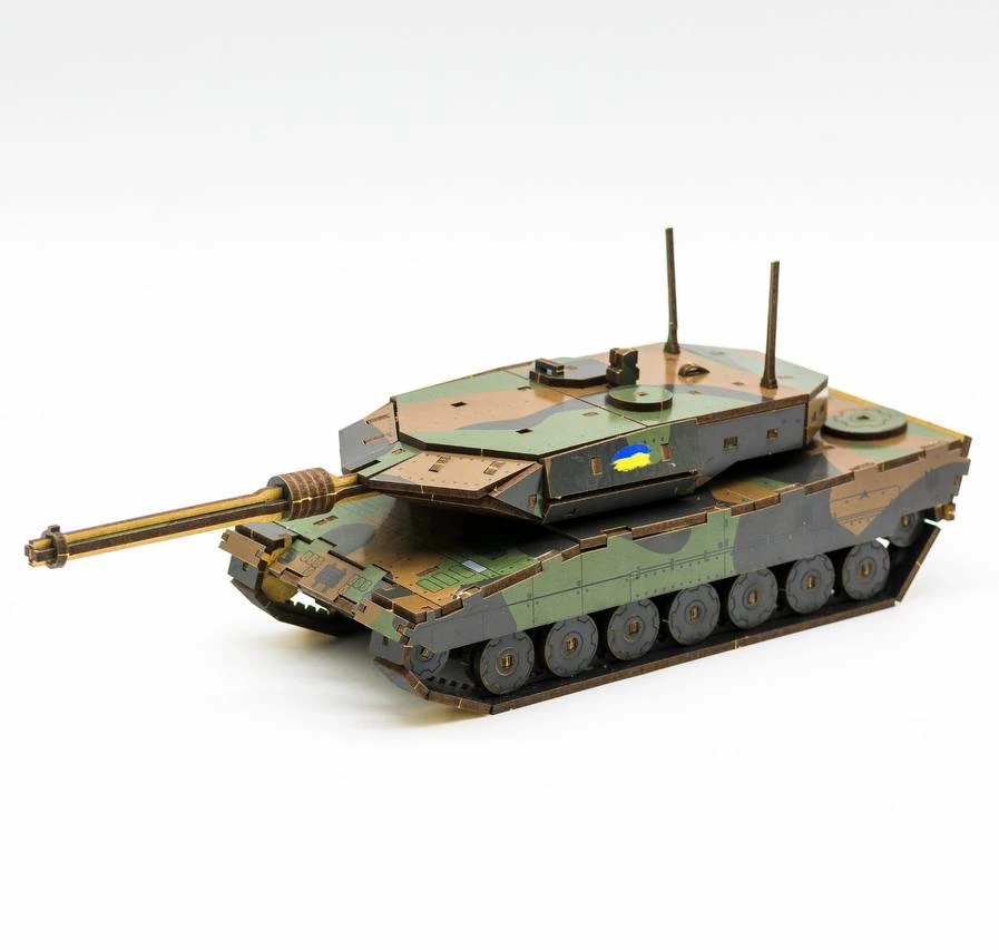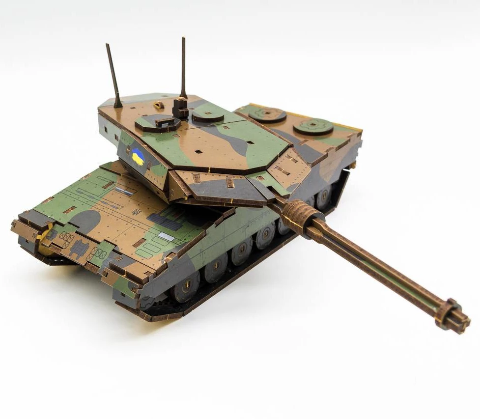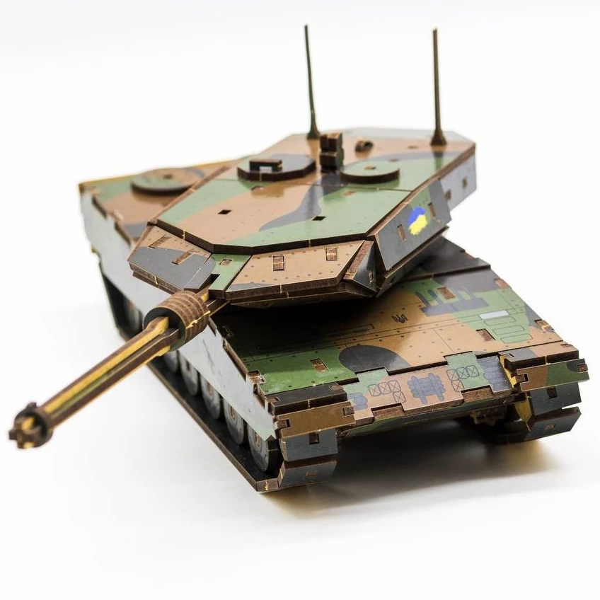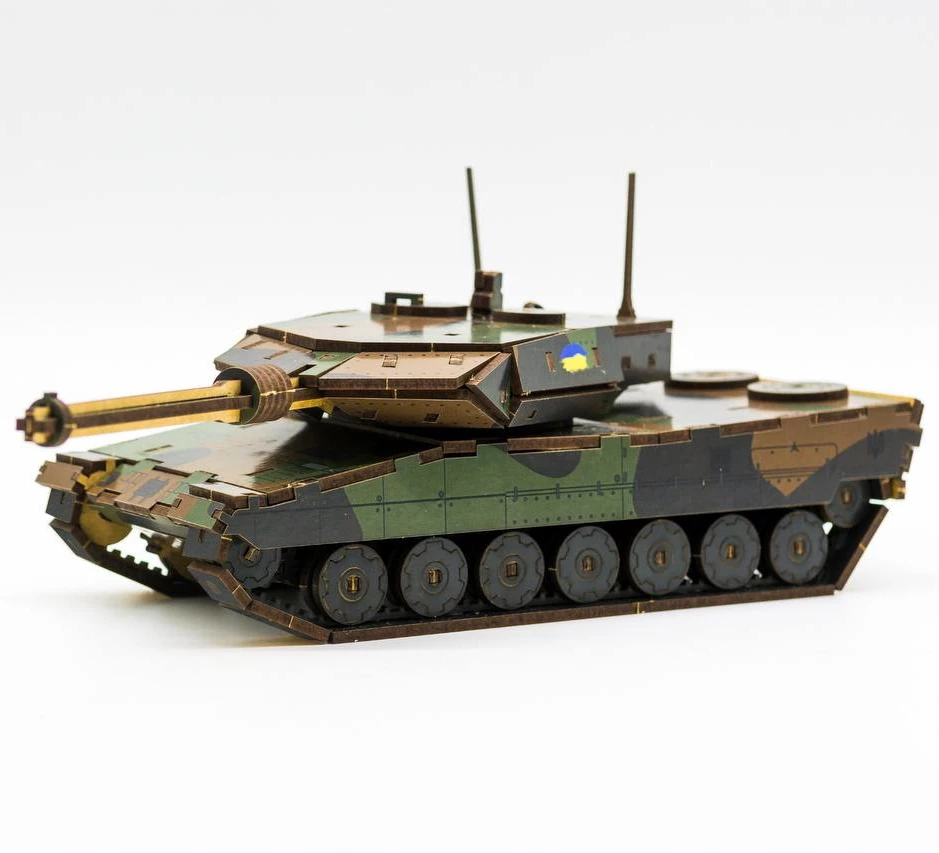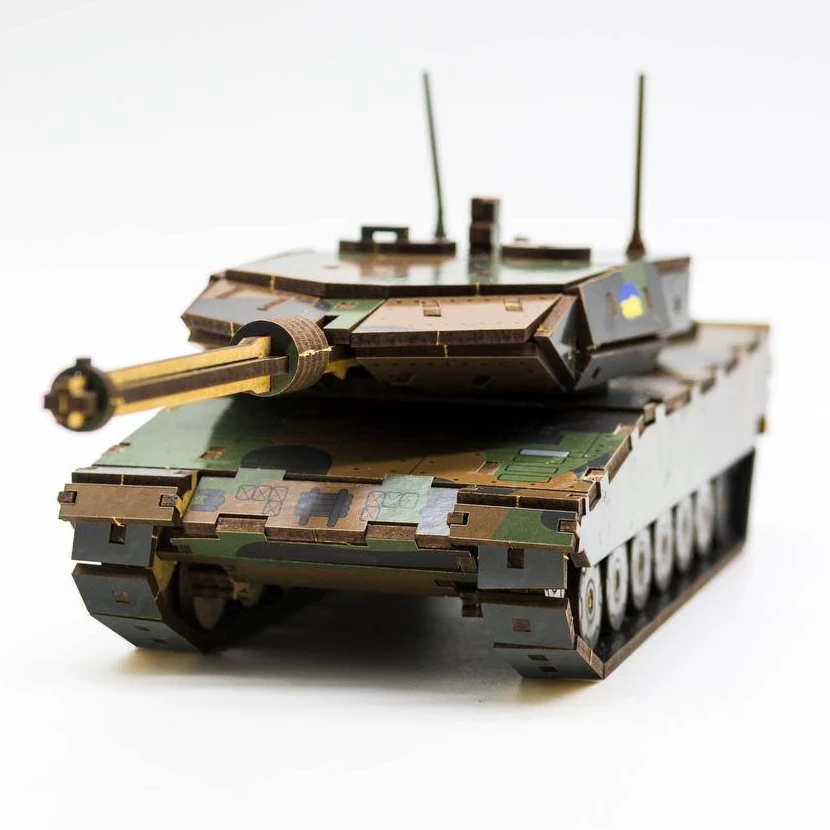Этот 3D-конструктор — не просто модель, а настоящий символ силы и современный артефакт, который вы создаете своими руками. Каждая из 206 деталей выполнена с ювелирной точностью, а гордый украинский флаг на броне делает сборку по-настоящему значимой и эмоциональной. Процесс превращения деревянных элементов в реалистичную машину размером 32 x 10 x 11 см подарит вам часы увлекательного творчества и искреннюю гордость за результат.
