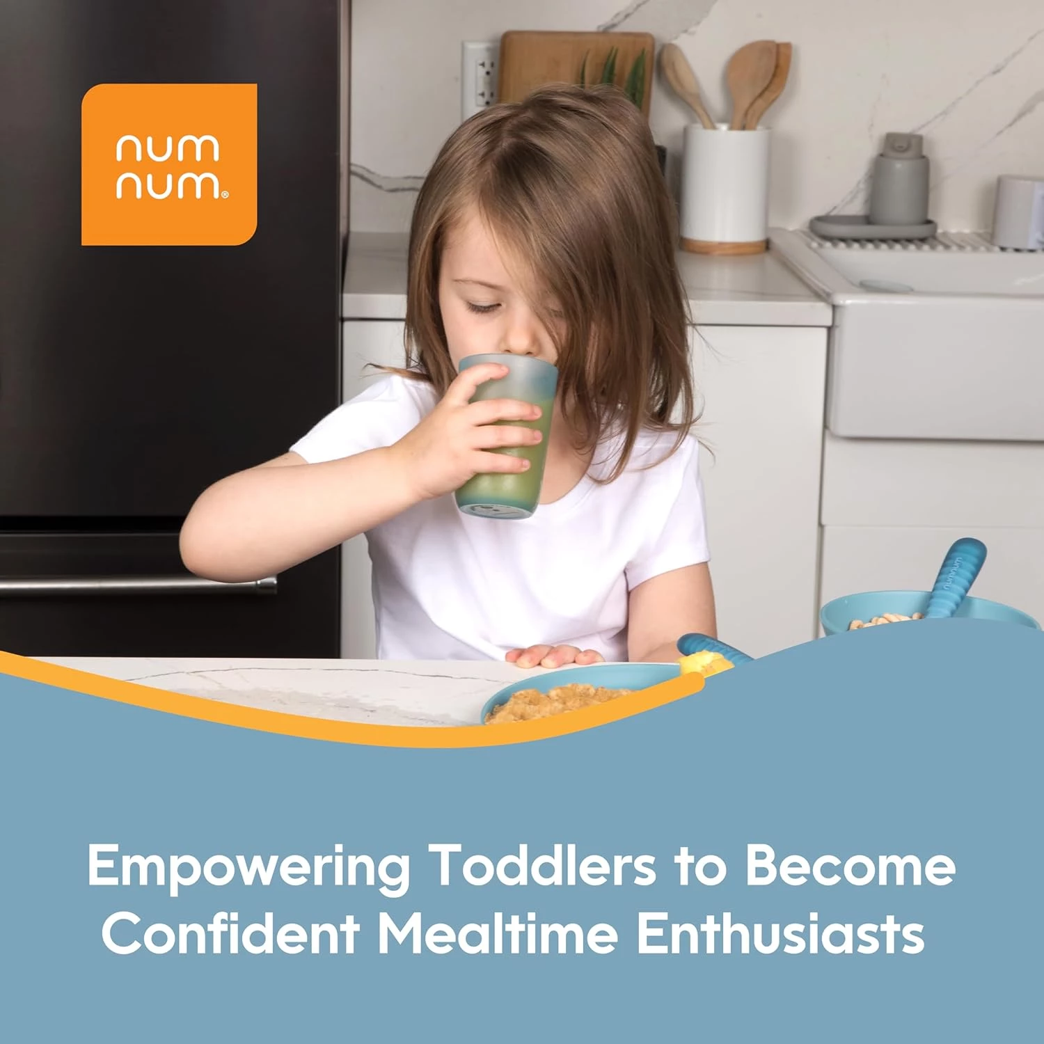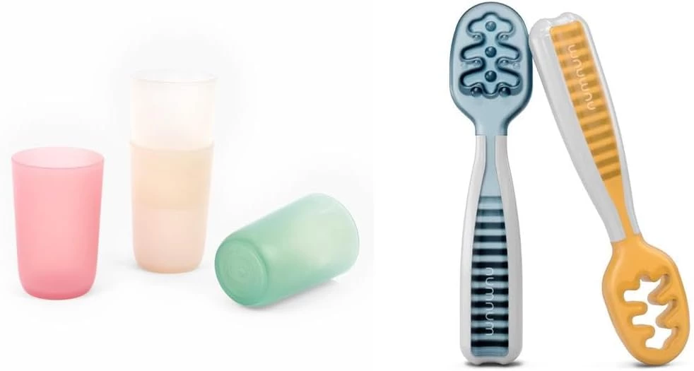 Развивайте самостоятельность вашего малыша с набором детской посуды от торговой марки NumNum, включающий в себя 4 чашки и 2 ложечки.