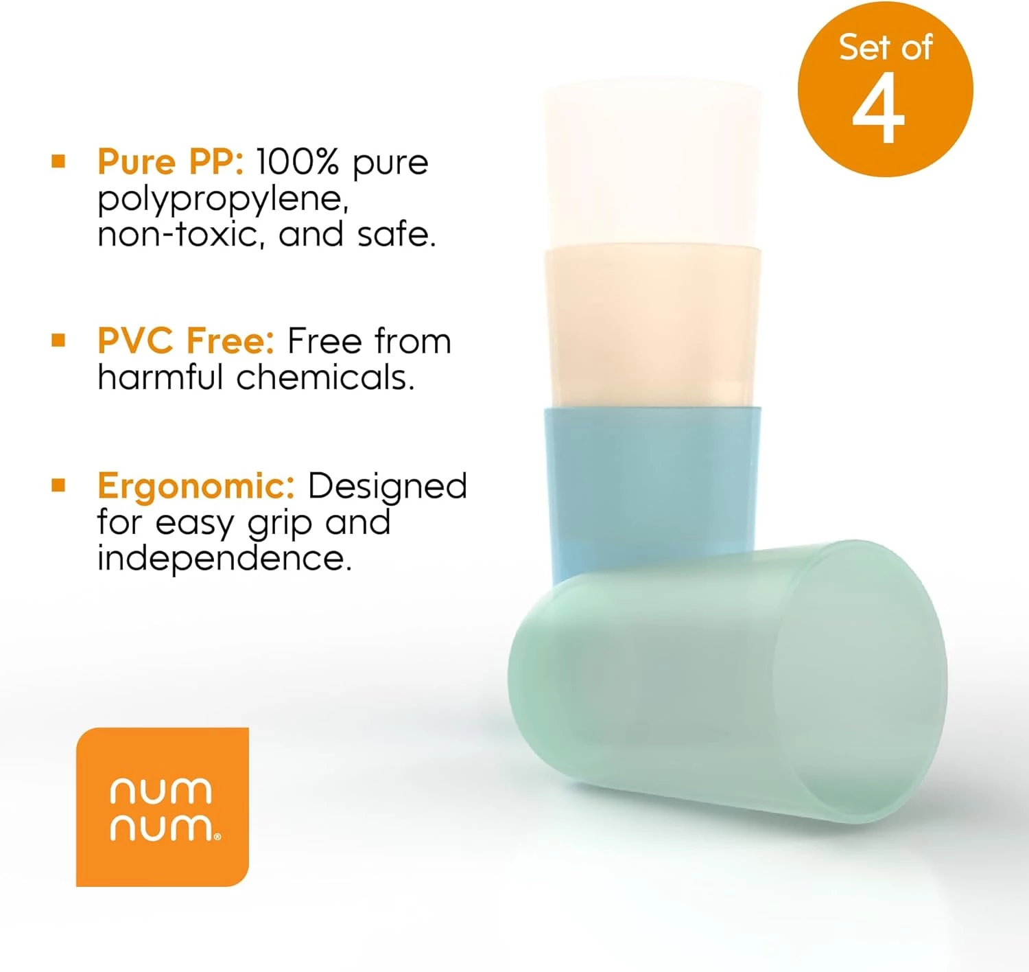 Мы знаем, как активны малыши, поэтому чашки от NumNum созданы, чтобы выдерживать любые испытания! Они невероятно прочные и выдержат падения, броски и чрезмерное использование, оставаясь целыми. Вы можете расслабиться, зная, что эти надежные чашки не потеряют своей формы и функциональности. А когда придет время уборки, ваша рутина упростится: чашки можно мыть в посудомоечной машине, и они легко справляются с пятнами и запахами, каждый раз становясь безупречно чистыми.