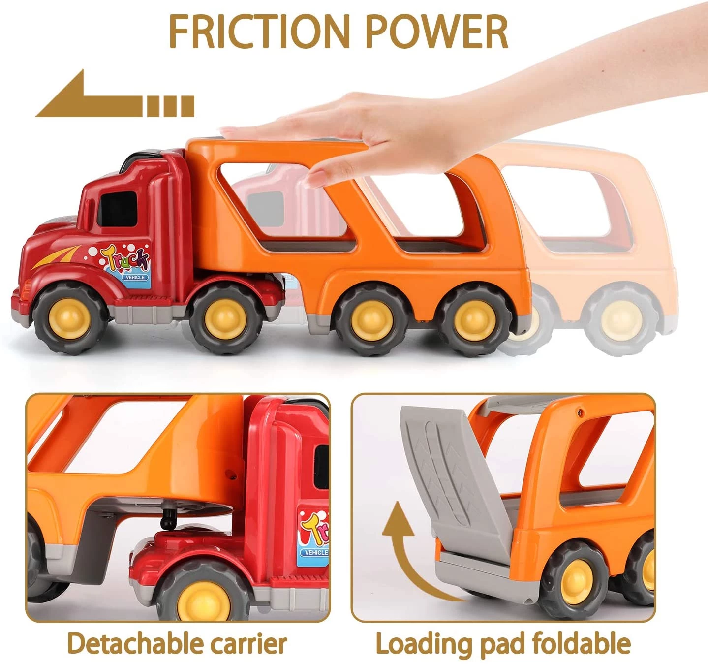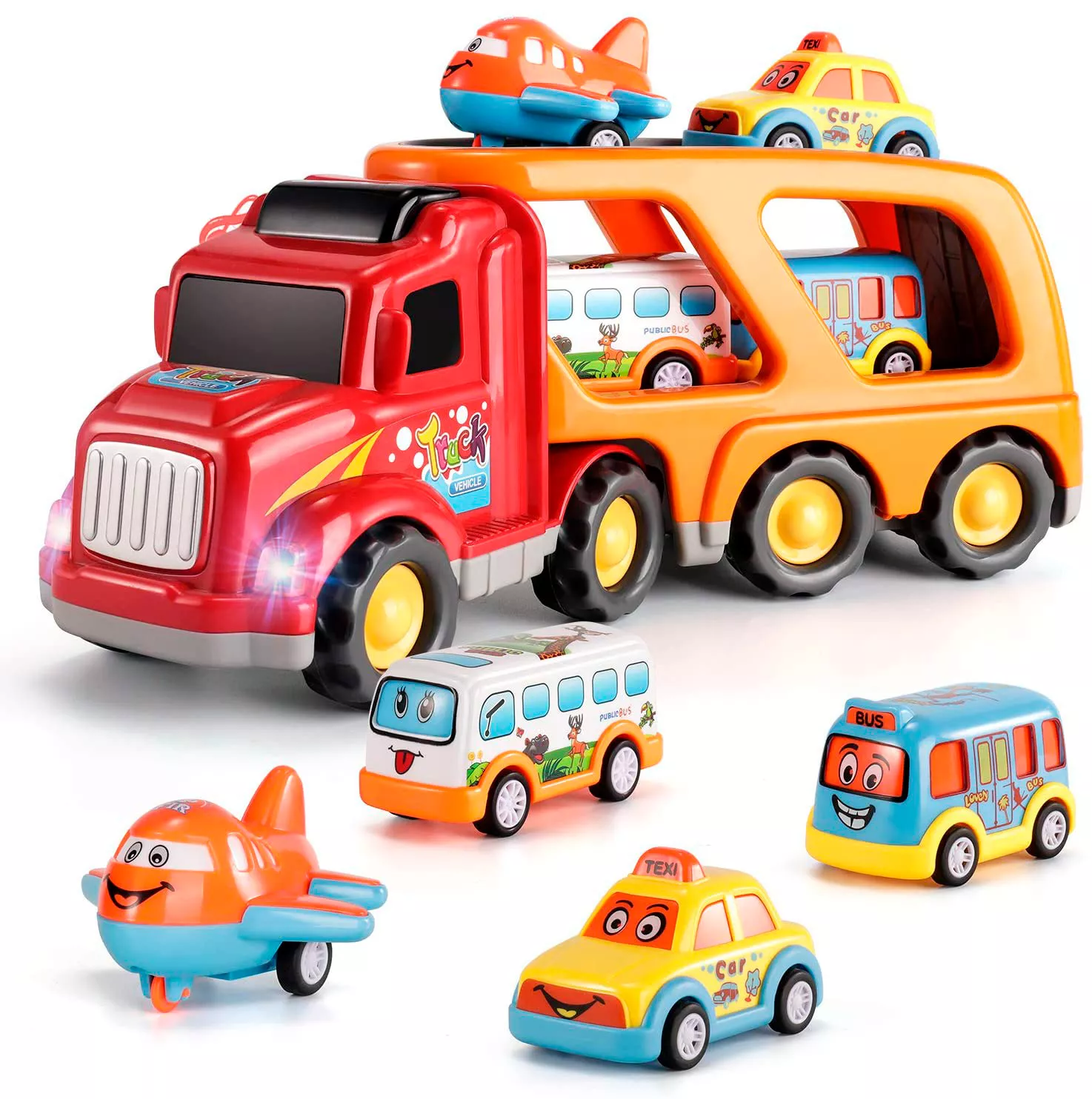 TEMI Carrier Truck Transport Car Play Vehicles Toys - 5 in 1 Mini Cartoon Bus/Taxi/Airplane