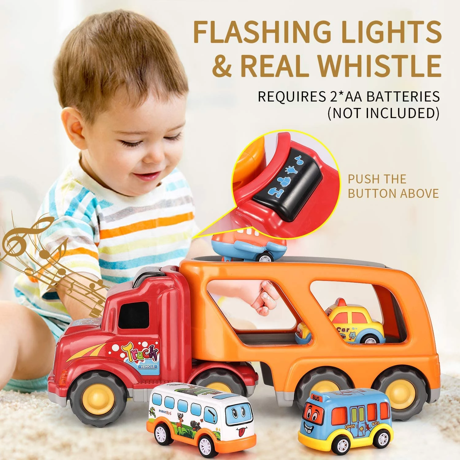 Игрушки сделаны из высококачественного нетоксичного пластика, который соответствует американским стандартам игрушек. Детали машины обтекаемые и гладкие, что позволит не поранится малышу. Машинки издают реалистичные звуки, ярко мигают огни. Это отличный подарок на день рождения / Рождество / вечеринку или любой другой праздник.