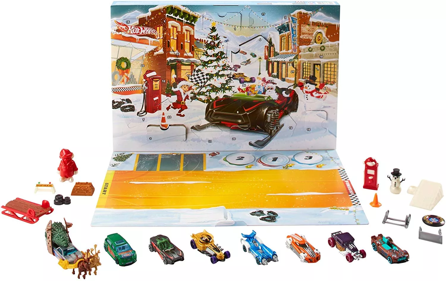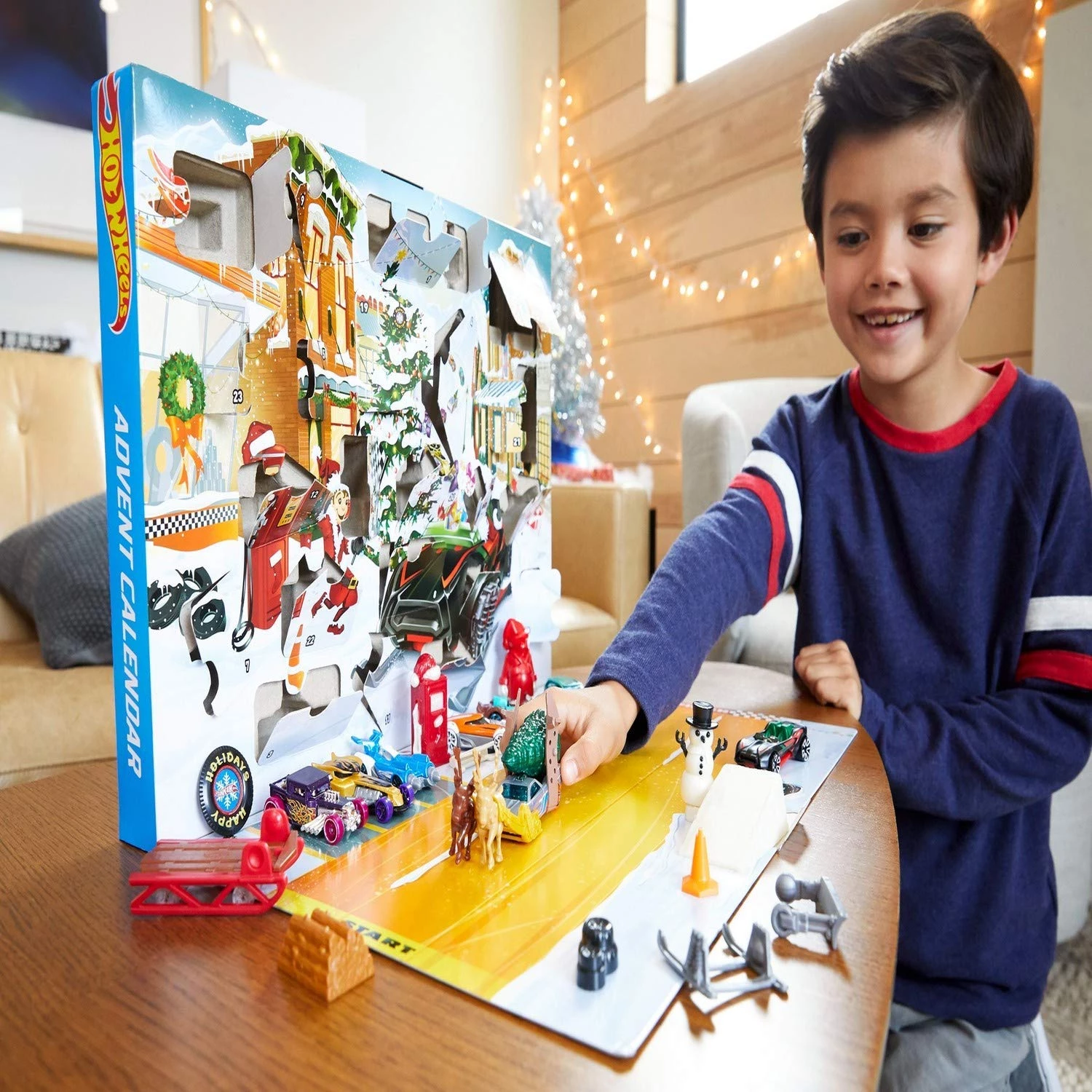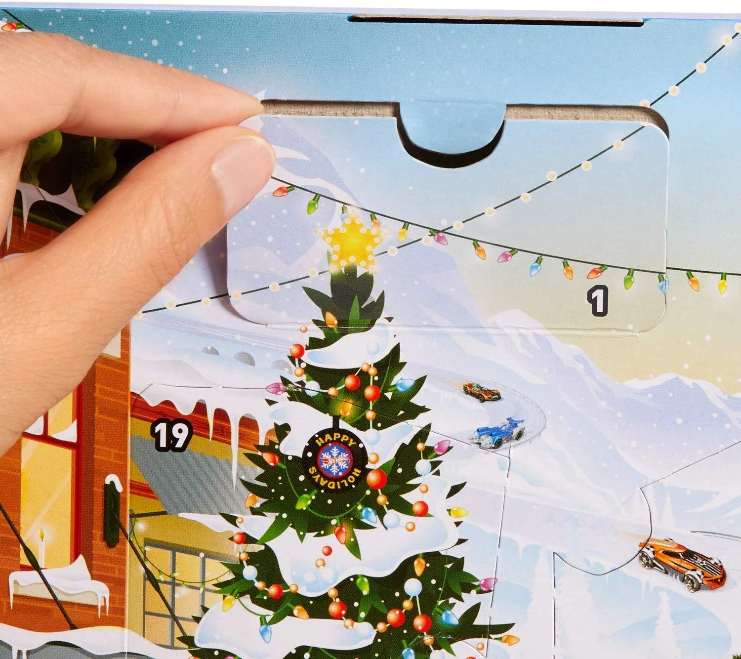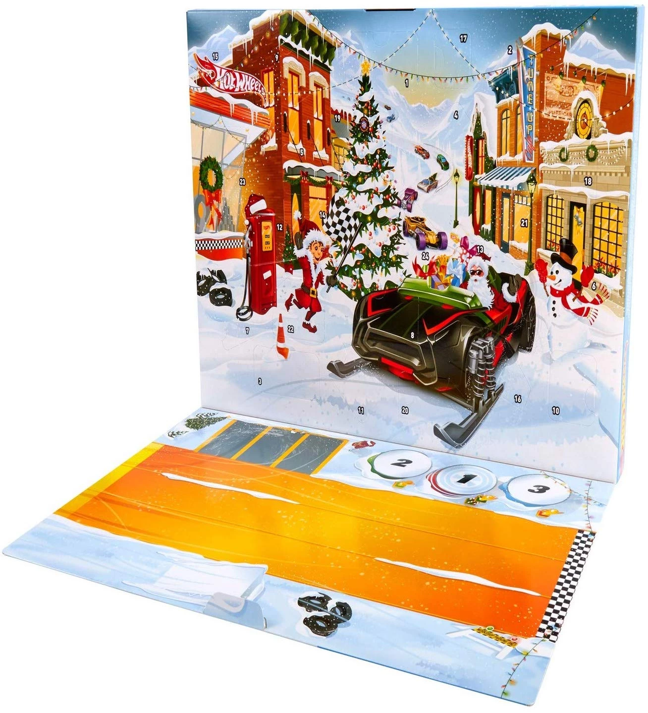 Красочная упаковка на Рождество и 24 окошка с сюрпризами от Hot Wheels! Этот современный взгляд на традиционный и знаменитый календарь Адвента наверняка понравится детям.