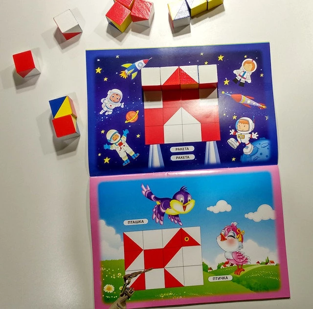 Альбом заданий для игры Сложи узор кубики 3х3см. Методика Никитина
