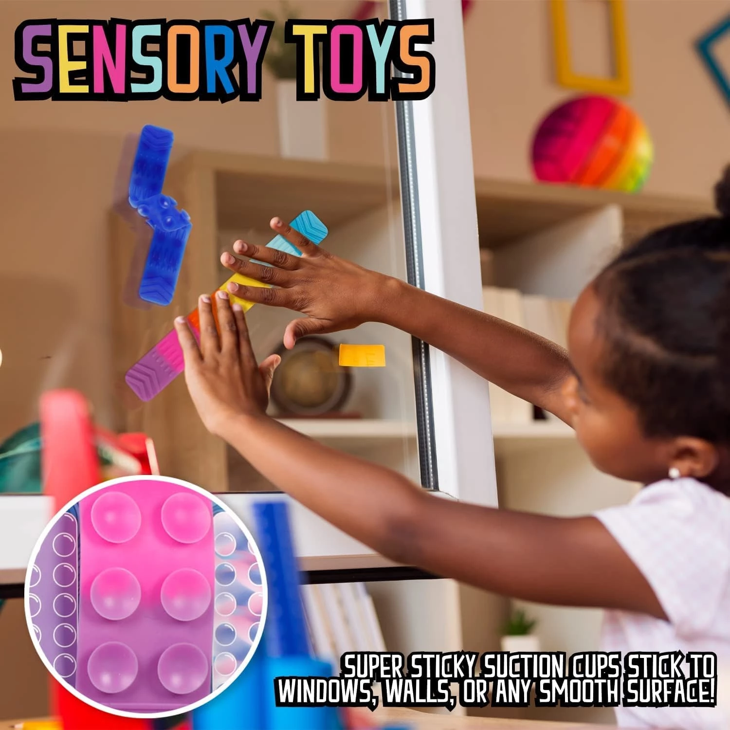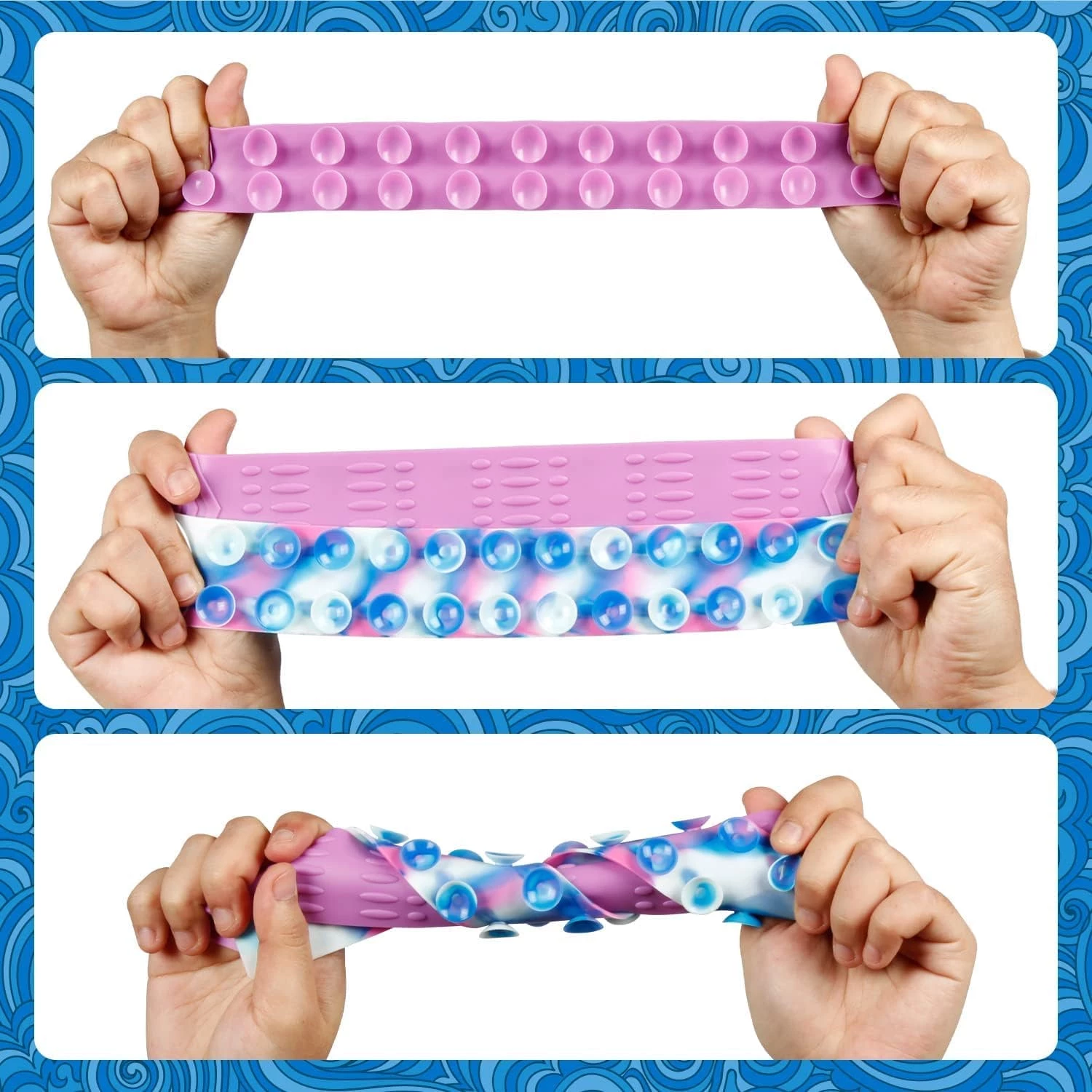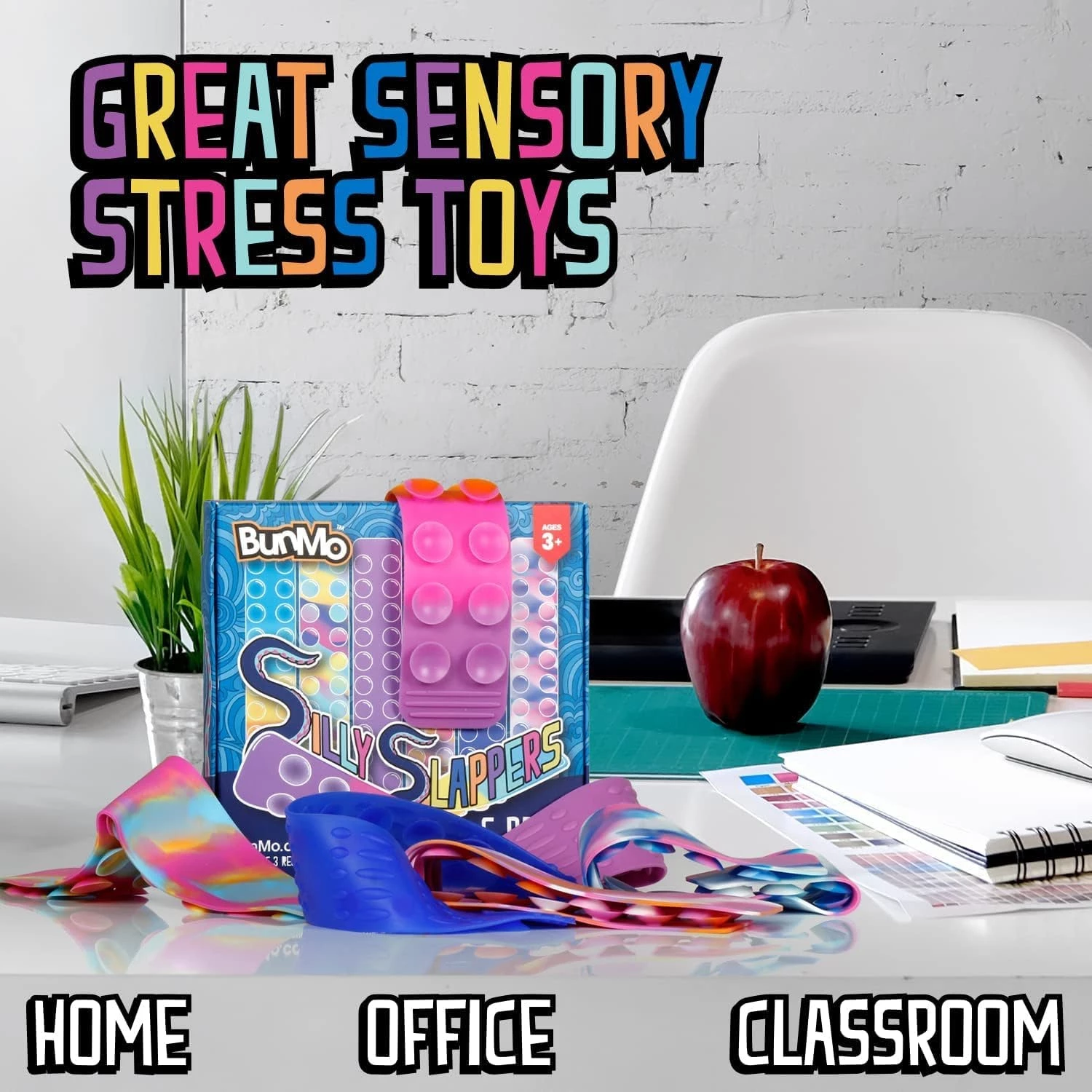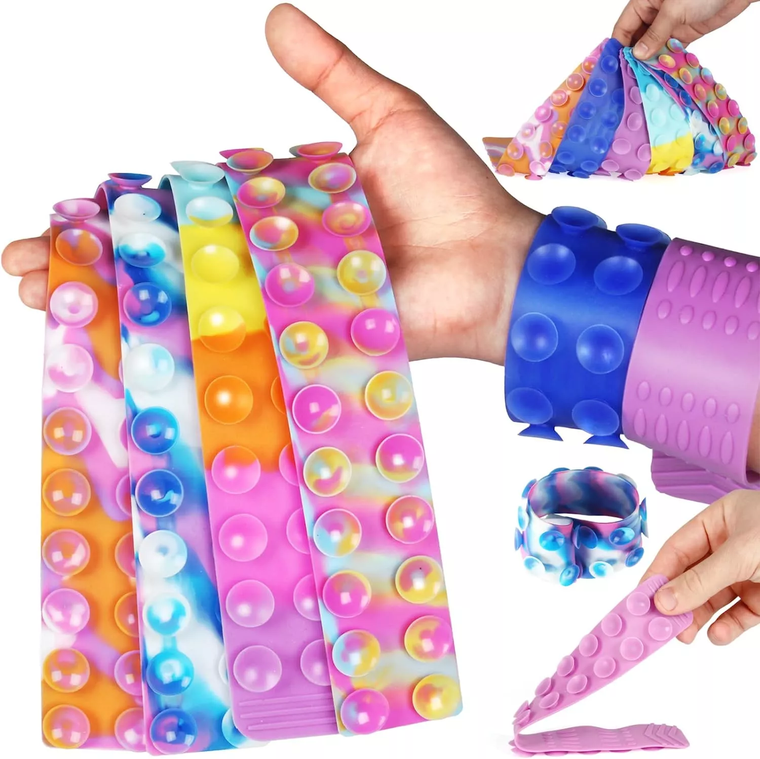 Этот браслет-антистресс от торговой марки BunMo идеально подходит для детей с СДВ или СДВГ и тревогой, а также для взрослых, которые хотят снять стресс и нервное напряжение. Силиконовую игрушку Sticky Pop Slap it можно скручивать, тянуть, растягивать, сгибать, и при этом она будет сохранять свою форму. Такое свойство делает данный браслет отличным приобретением для детей, желающих снять стресс и нуждающихся в сенсорной стимуляции.