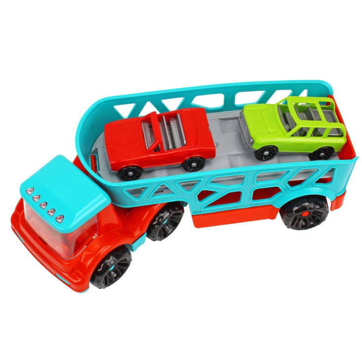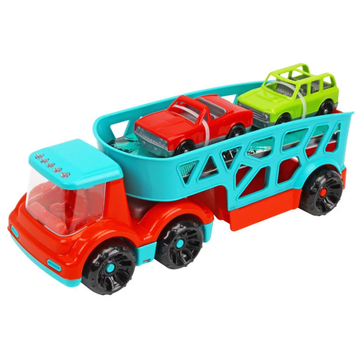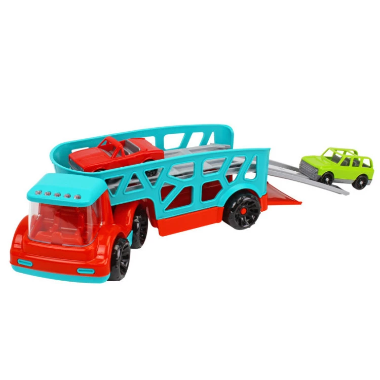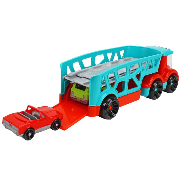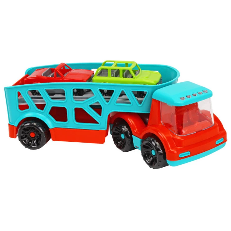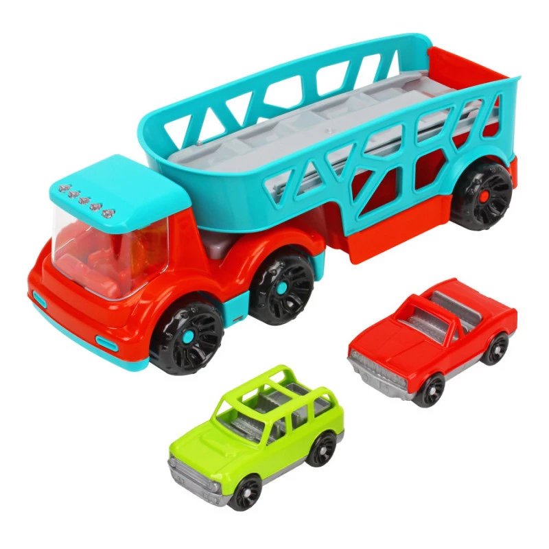 Этот мощный автовоз размером 32 x 13 x 14 см с подвижным прицепом и большим прозрачным ветровым стеклом поражает воображение своей реалистичностью. В наборе вы также найдете две яркие легковые машинки, готовые к любым путешествиям. Погрузка и выгрузка легковых машинок превратится в увлекательное занятие, благодаря наличию двух платформ. Верхняя платформа оснащена выдвижным трапом, а нижняя — откидным бортом-трапом. Маленький фантазер будет с огромным удовольствием создавать собственные логистические маршруты и игровые сценарии.