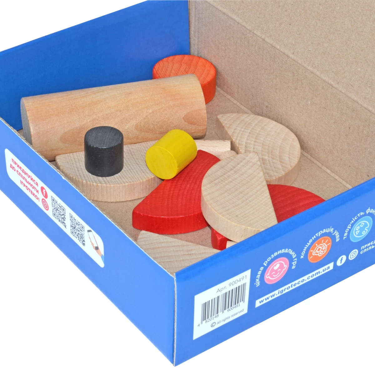 Деталями представленного игрового набора можно играть по-разному — они прекрасно подходят для сооружения всевозможных построек, их можно комбинировать с другими деревянными кубиками.