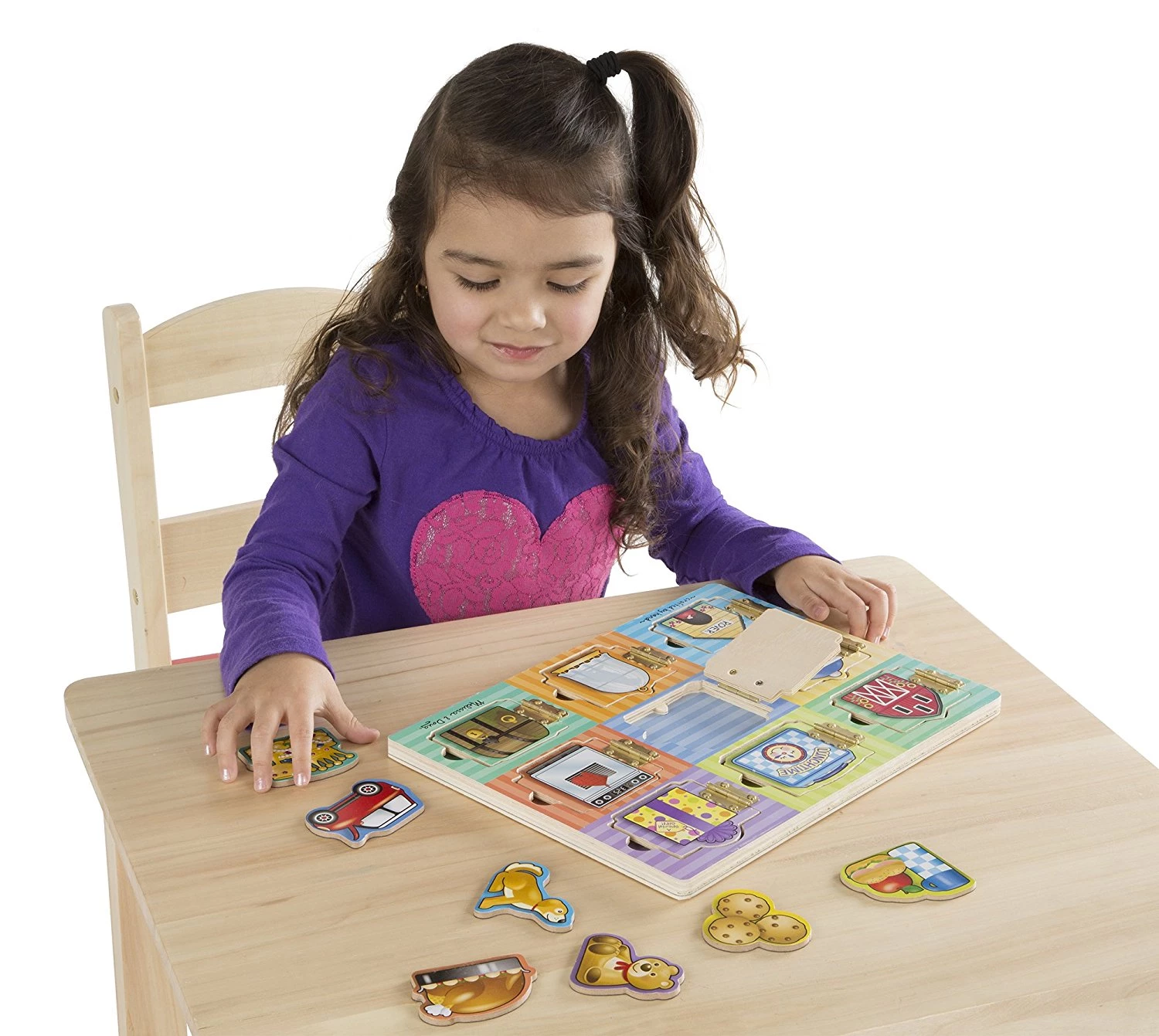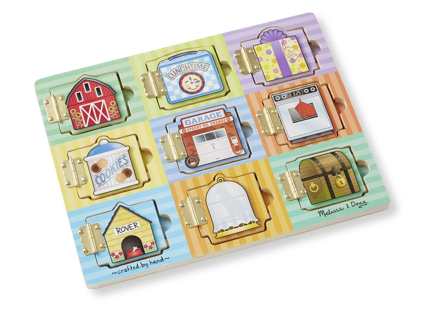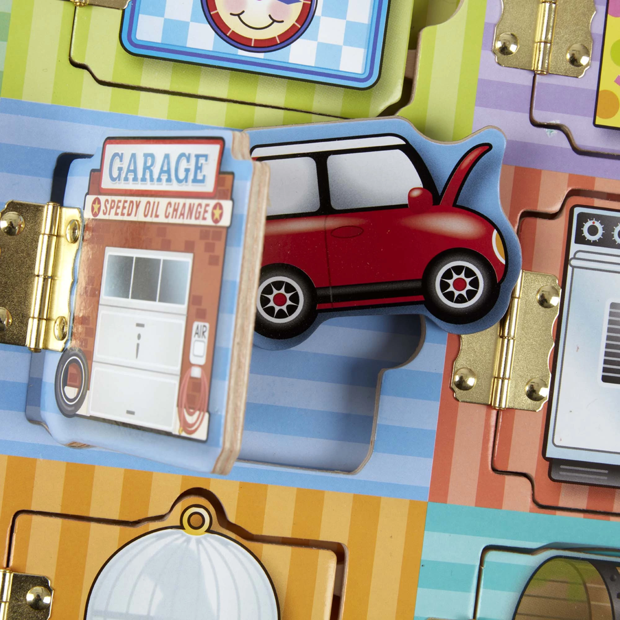 Эта деревянная доска изготовлена из высококачественных материалов, которые безопасны для деток. На ней размещены 9 разных дверей, за которыми прячутся собачка, корова, печенье, машина и многое другое! Прочная конструкция обеспечивает долговечность этой игрушки.
