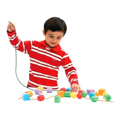Отличный развивающий набор, с которым дети учат цвет и последовательность. Нужно нанизывать большие бусины на шнурки в определенном порядке: по форме и цвету. Бусы удобно хранятся в прочном закрывающемся контейнере с ручкой. Во время игры, ребенок учится основам счета, узнает о последовательности, сортировке, структурировании. Набор подойдет для изучения основ алгебры.