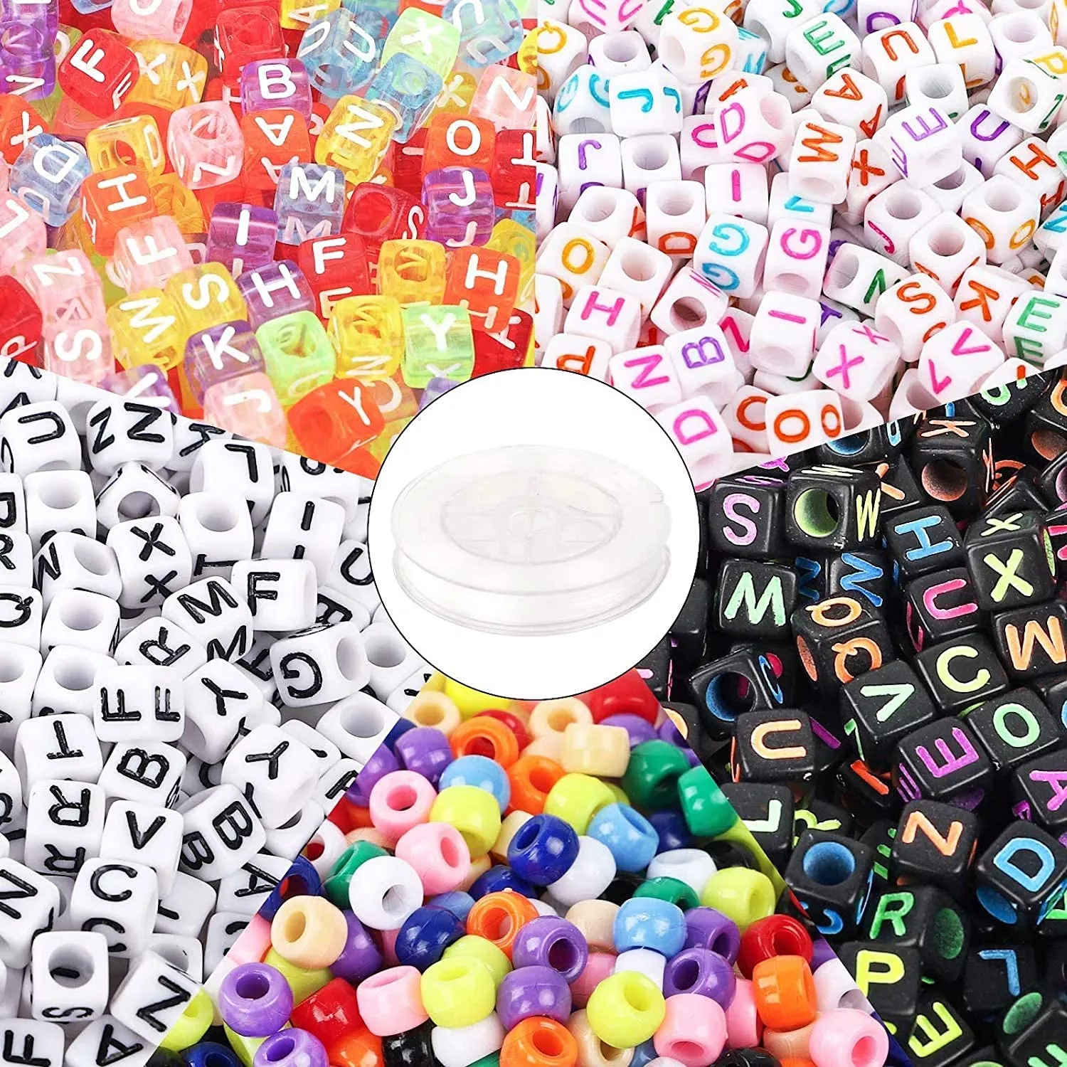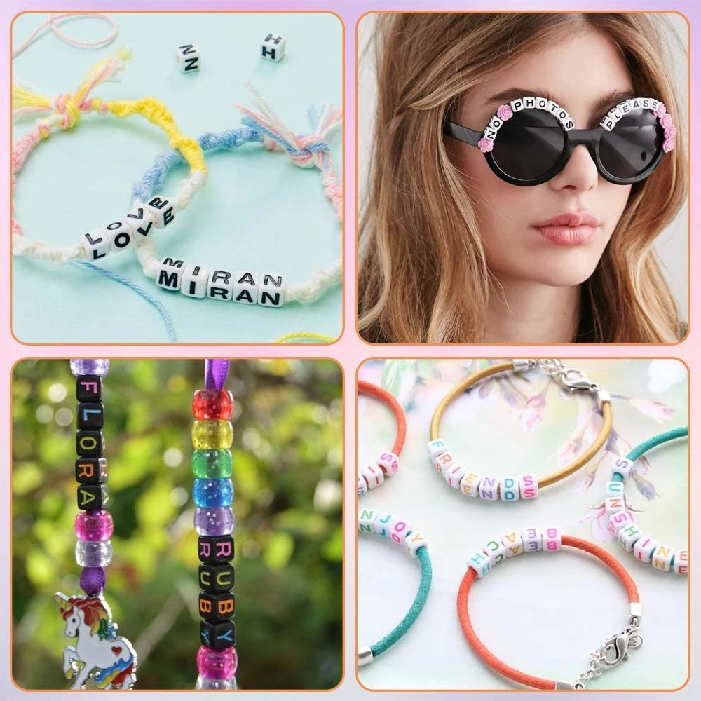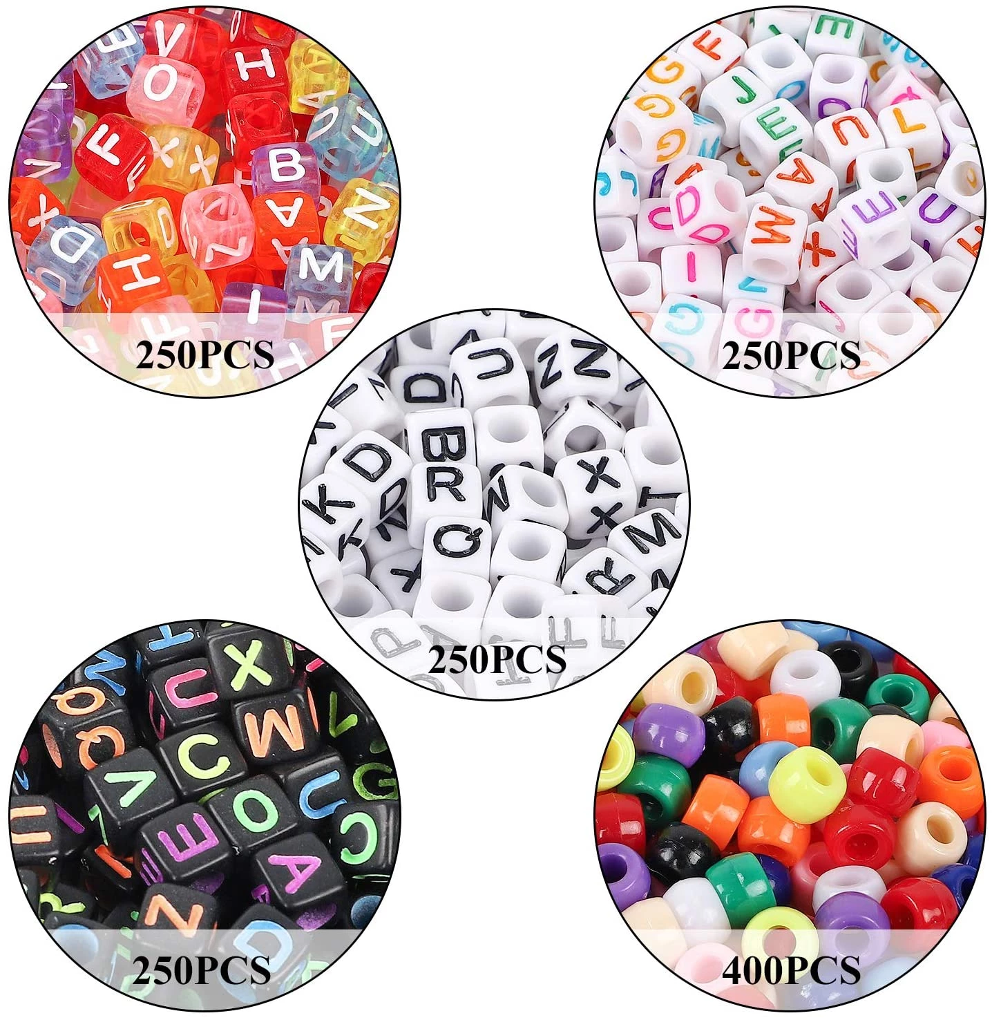 DICOBD 1400pcs Beads Kit Letter Beads Square Alphabet Beads Large Hole Beads for Crafts Jewelry