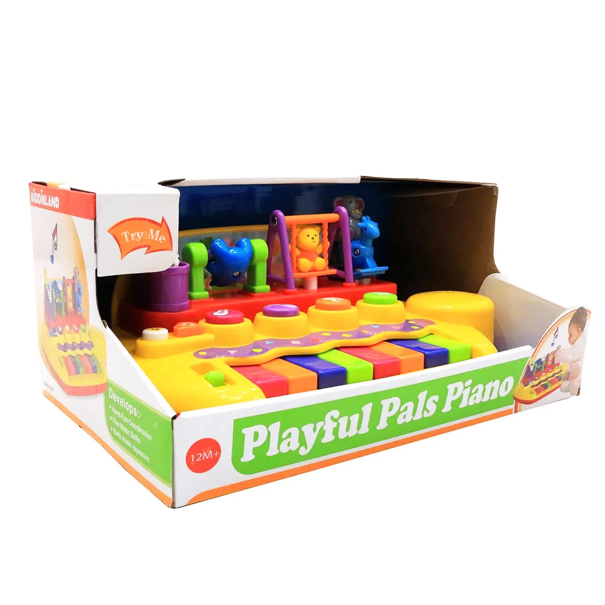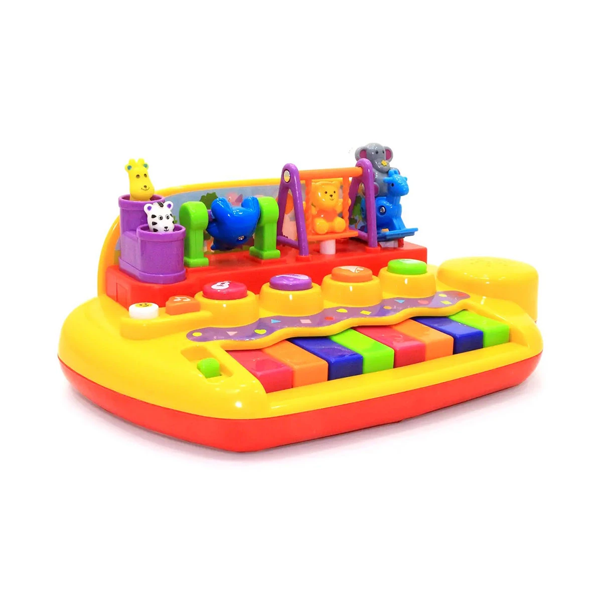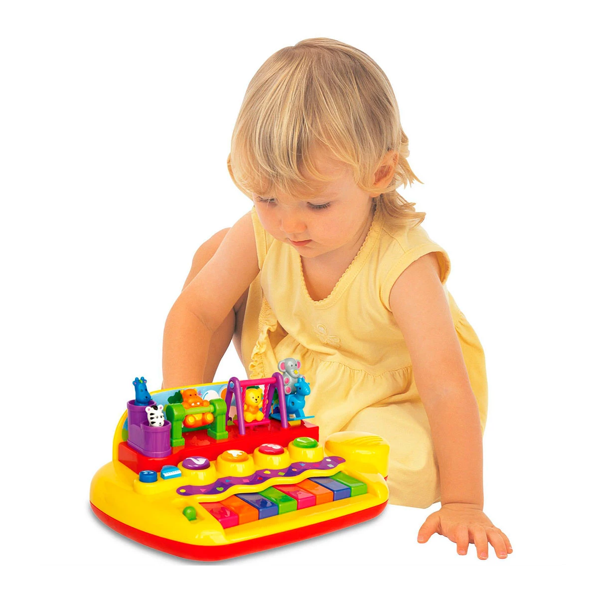 Это яркое пианино будет отличным подарком для маленьких музыкантов. Небольшой синтезатор дополнен подвижными фигурками зверушек, катающихся на качельках в такт с музыкой. Яркая и интересная игрушка развеселит кроху приятными мелодиями. Детское пианино может проигрывать несколько мелодий, которые находятся в памяти устройства. Чтобы прослушать их, достаточно нажать на специальную кнопку. Синтезатор передает звучание таких инструментов: фортепиано, саксофон, баян, скрипка и колокольчики.Питание игрушки: 4 батарейки AA (входят в комплект).