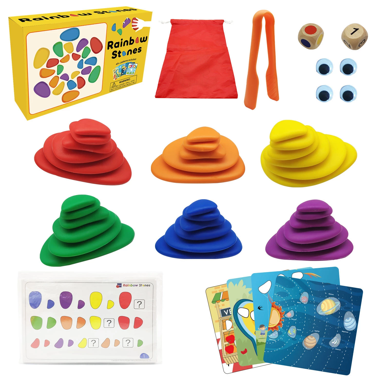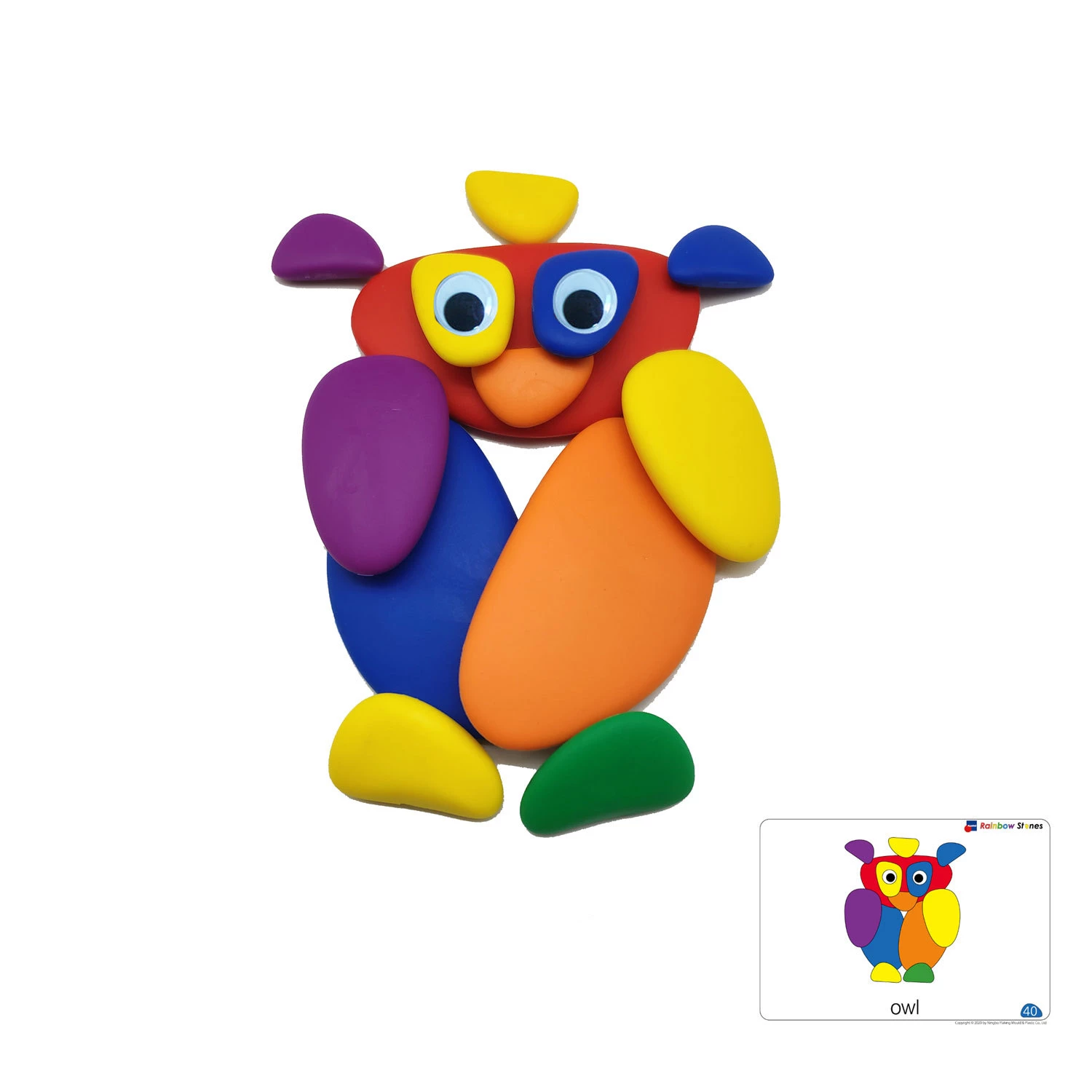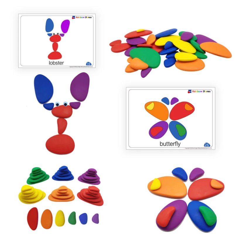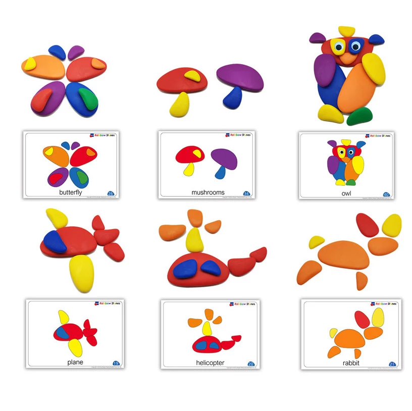 Интересный развивающий набор предназначен для маленьких деток, которых необходимо занять полезным занятием. На 20-ти карточках нанесены картинки, соответственно которым нужно разложить цветную гальку. Камушки очень яркие и приятные на ощупь, они способствуют улучшению мелкой моторики. Детям очень нравится выполнять такие задания, это хорошо развивает логическое мышление, внимательность и усидчивость.