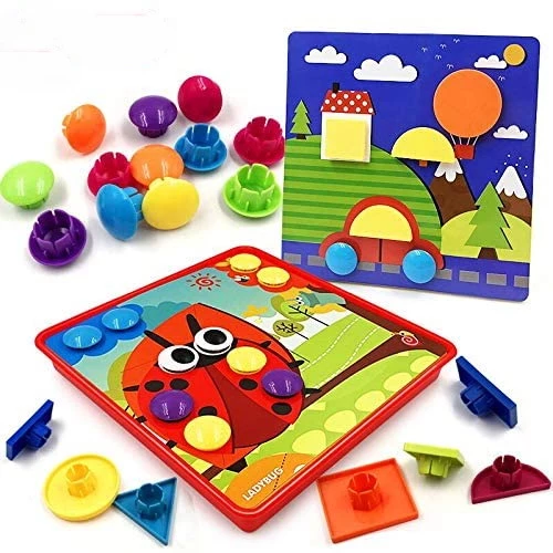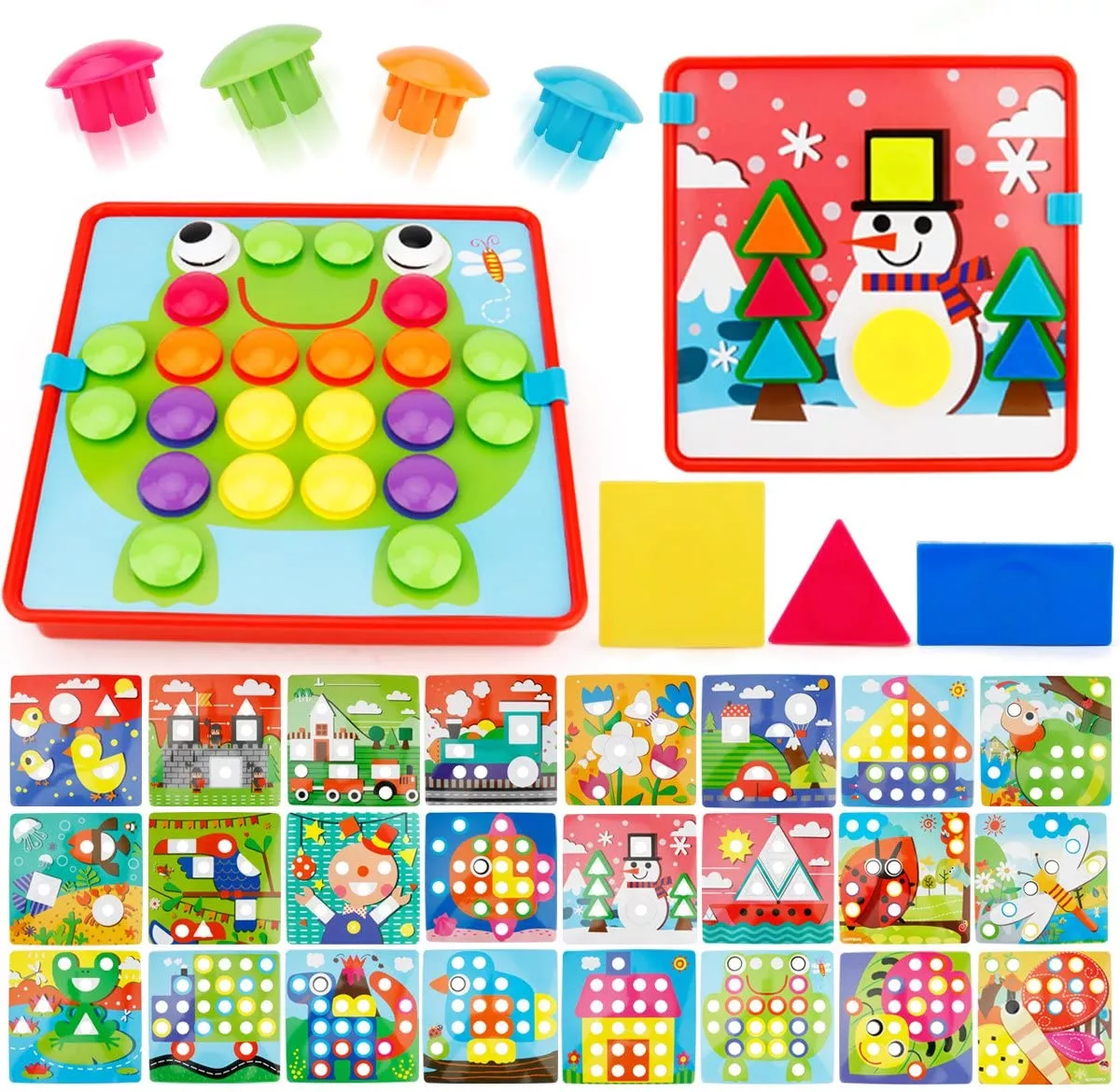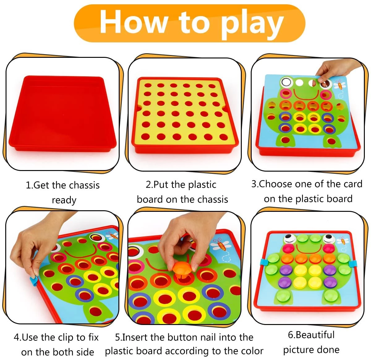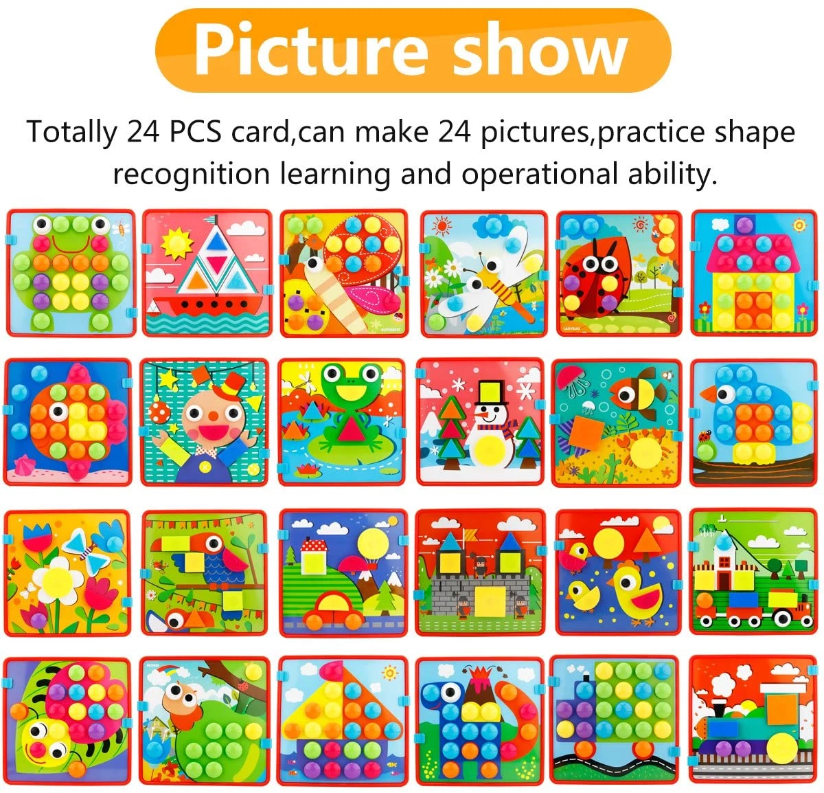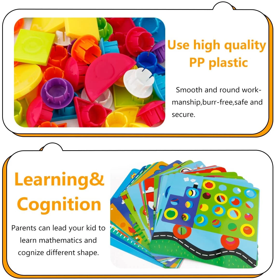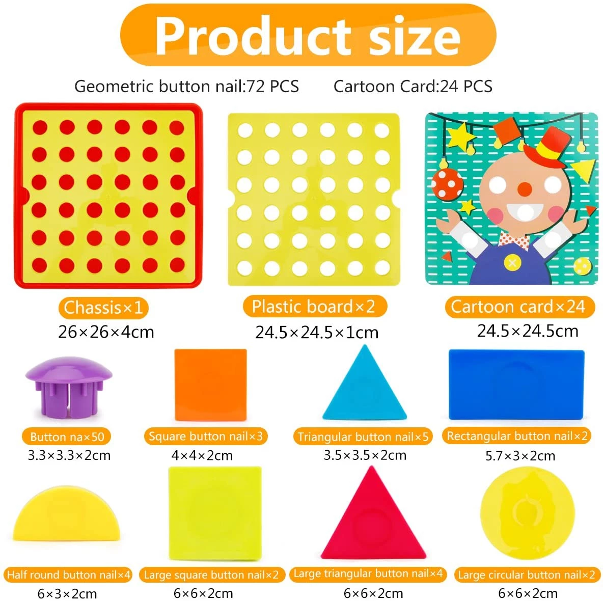 JoyGrow 2 in 1 Button Art Color Matching Mosaic Pegboard Set (72 PCS Buttons and 24 templates )