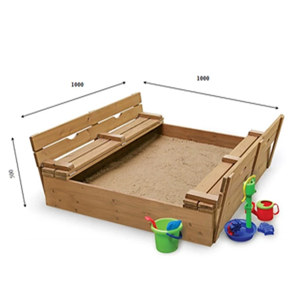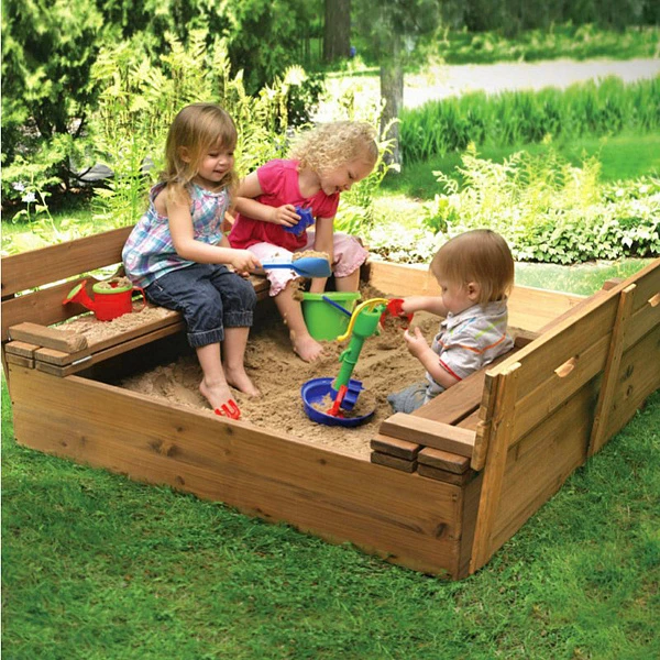 Детская песочница сможет покорить сердце каждого ребенка. Благодаря этому малыш сможет интересно проводить время со своими ровесниками и добиться уважения и почета в круге друзей. Также по двум сторонам песочницы находятся деревянные лавочки, благодаря которым ребенок сможет отдохнуть на чистом месте, а не пачкаться в песке. Малыш захочет больше времени проводить на улице, при создании песочных фигур он будет развивать мелкую моторику, а также его творческие способности. Таким образом, в играющей форме, ребенок сможет развиваться и познавать что-то новое для себя.