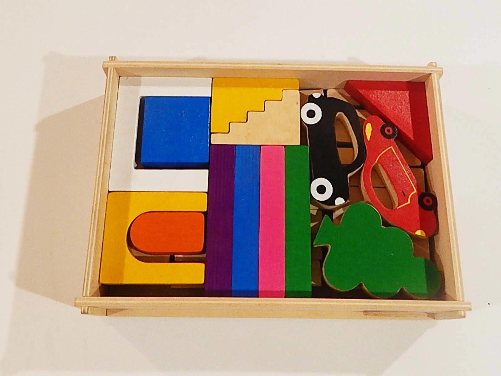 Предлагаемый конструктор включает в себя 28 деталей, выполненных из качественной древесины. Толщина каждой детали не менее 2 см, что важно для малышей. Главная особенность данного набора — возможность сосредоточиться на парных элементах разных цветов. Один элемент окрашен в определенный цвет и точно такой же выполнен в натуральном цвете. Эту особенность оценят те дети, которым нравятся одинаковые предметы разных цветов. Также это способствует развитию аналитического мышления.