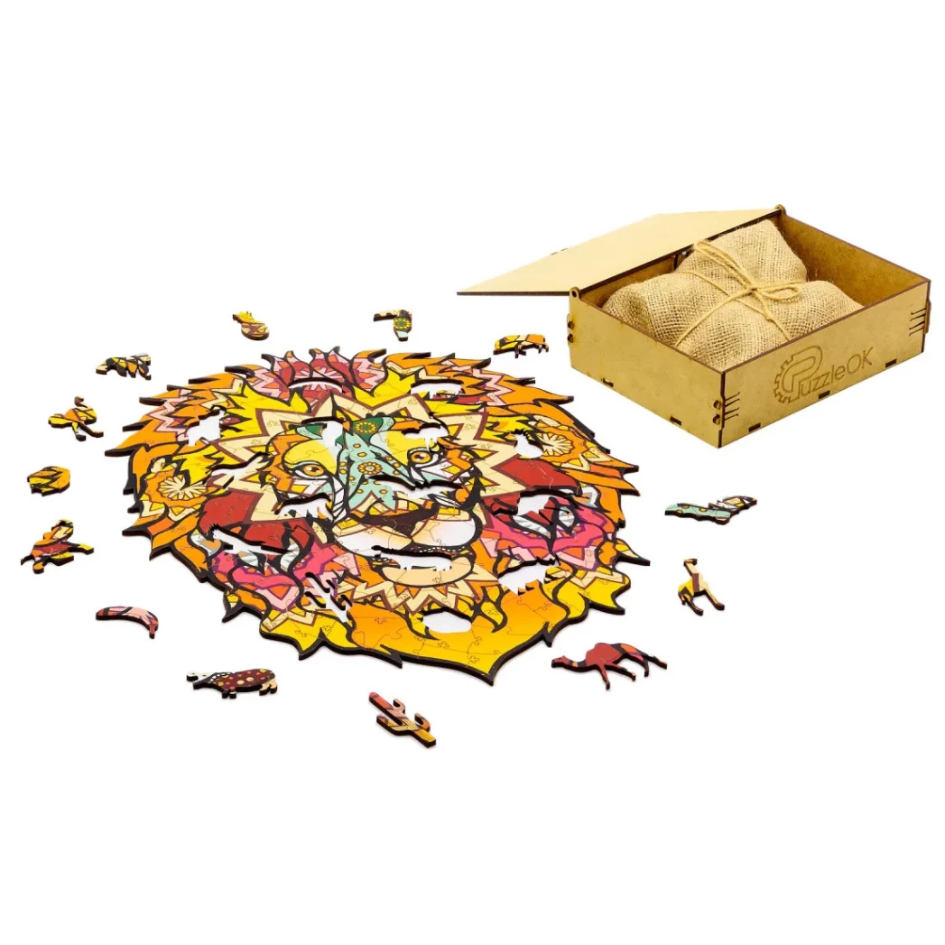 Красивый деревянный пазл с роскошным фигурным изображением льва прекрасно подойдет для подарка на любой праздник. Особую атмосферу создает легкий запах дерева с ароматом дыма. Такой пазл хорошо развивает логику, сообразительность, мелкую моторику и внимательность. Картина очень интересная и сложная, ее можно очень долго рассматривать и находить смысл в абстракции. Качественные детали прослужат очень долго, ведь пазл можно собирать многократно.