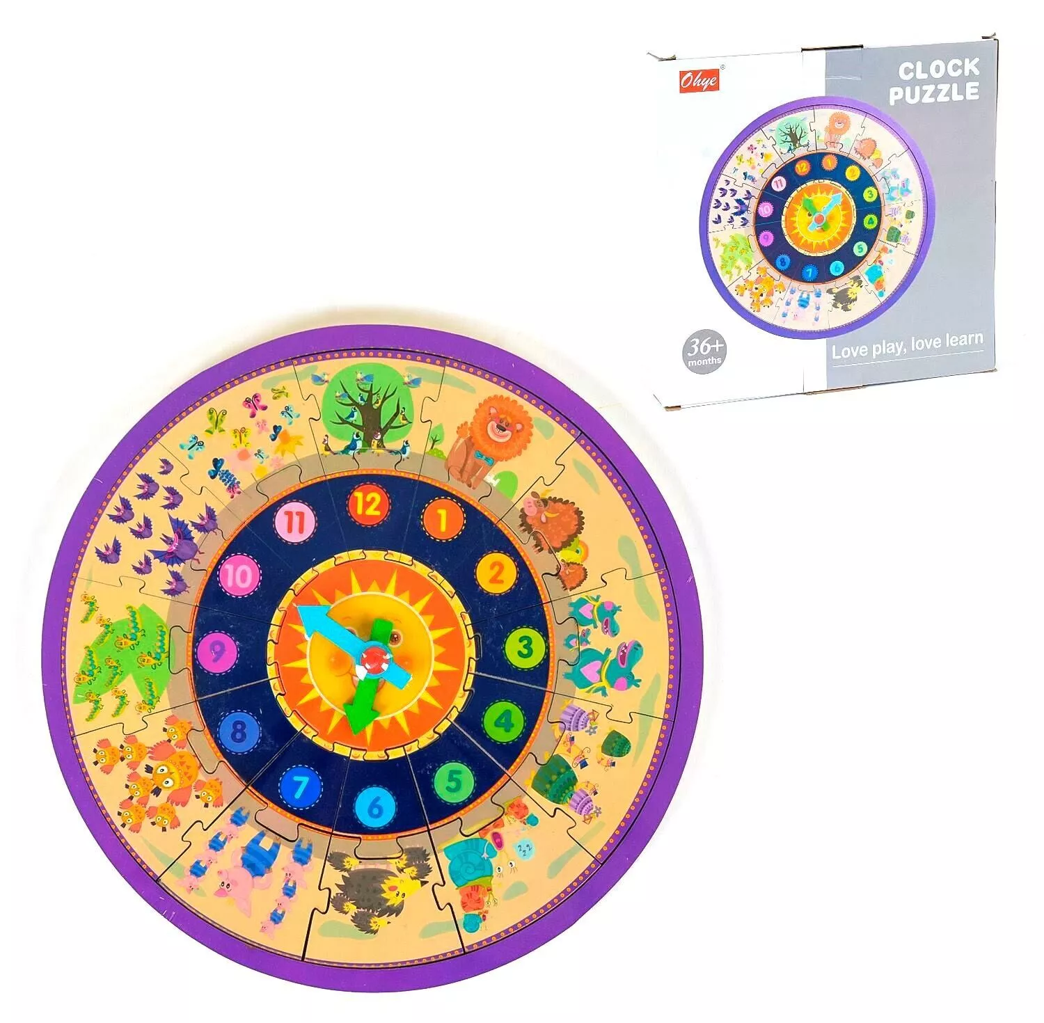 Например, около цифры “1” находится один большой лев, а около “12” нарисовано дерево, на котором нужно сосчитать всех птичек и зверей. Помимо чисел, ребенок может научиться понимать по стрелочным часам. Можно играть самостоятельно, а также вместе с родителями или друзьями.