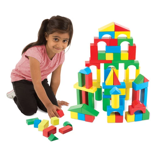Набор из разноцветных деревянных элементов прекрасно подойдет в качестве развивающей игрушки для ребенка. Из фигурок разнообразных форм (кубики, конусы, прямоугольники, треугольники и т.д.) можно построить замок, дорогу, гараж, дом и многое другое. Этот набор подходит для самостоятельной и групповой игры. Ребенок может изучить не только геометрические фигуры, но и цвета. Фигурки окрашены нетоксичной краской, потому ими можно играть еще совсем малышам.
