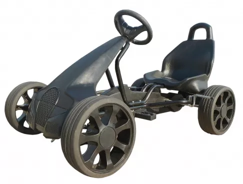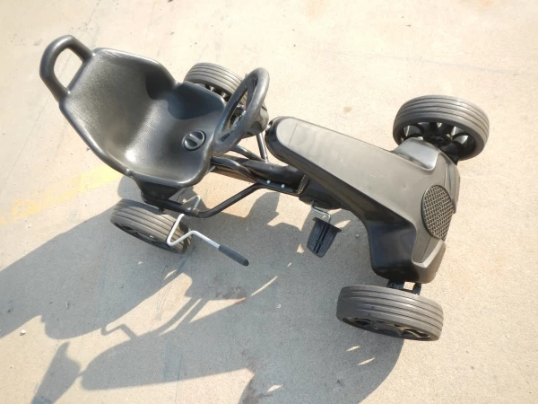 Каркас веломобиля металлический и сварен кислородным способом, отличается прочностью и стабильностью швов.