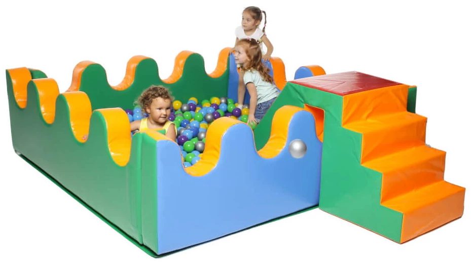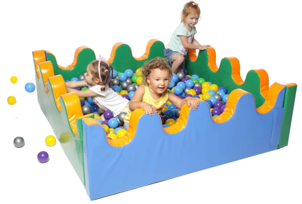 Сухой бассейн - это популярное развлечение, которое покорило всех детей! В нем можно не только весело, но и продуктивно провести время. Стенки бассейна сделаны в форме волны.