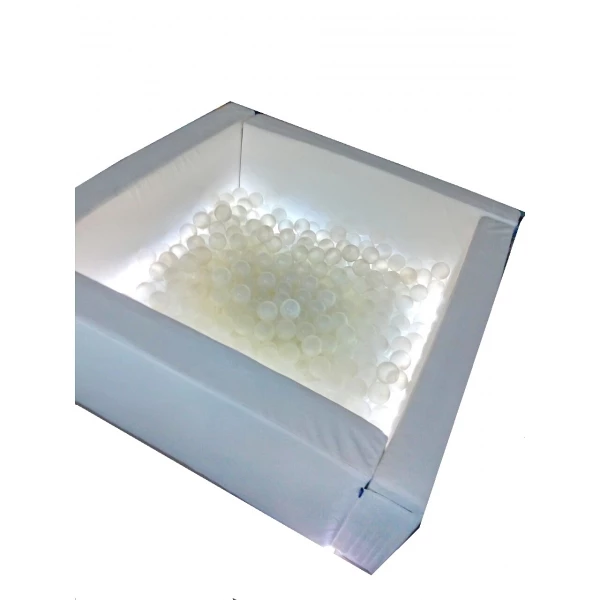 Бассейн со светодиодной подсветкой - безопасный, прочный, мягкий. Подойдет для пластиковых шариков. Благоприятное сенсорное воздействие на психологическое, эмоциональное и физического развитие детей. Наполнитель оказывает массажное действие, яркие детали способствуют изучению цветов и форм. Часто используется в реабилитационной работе детей с отставанием в развитии или неврологическими патологиями. Светодиодные лампы, вмонтированные по периметру изделия оказывают благоприятное воздействие светотерапией.