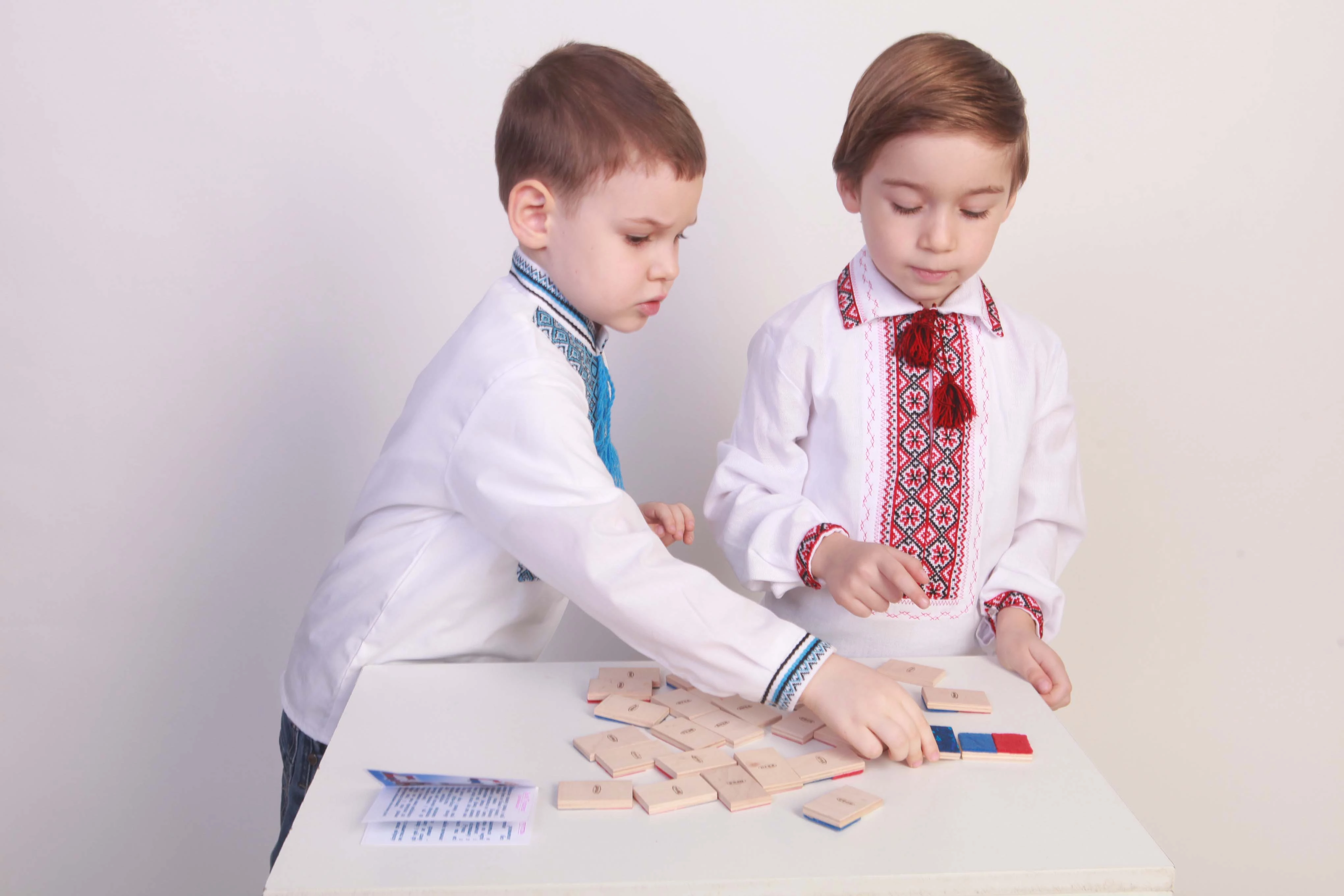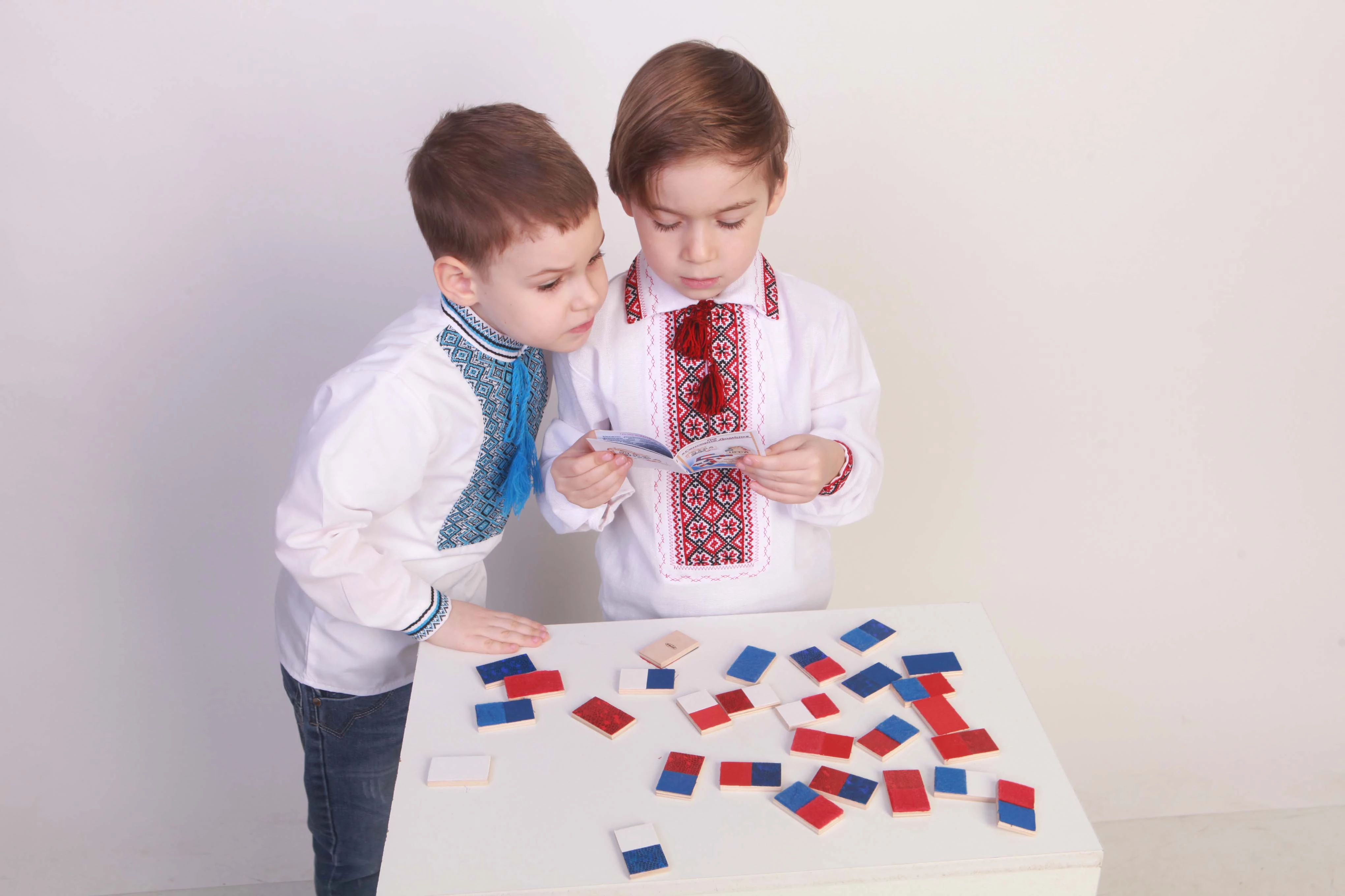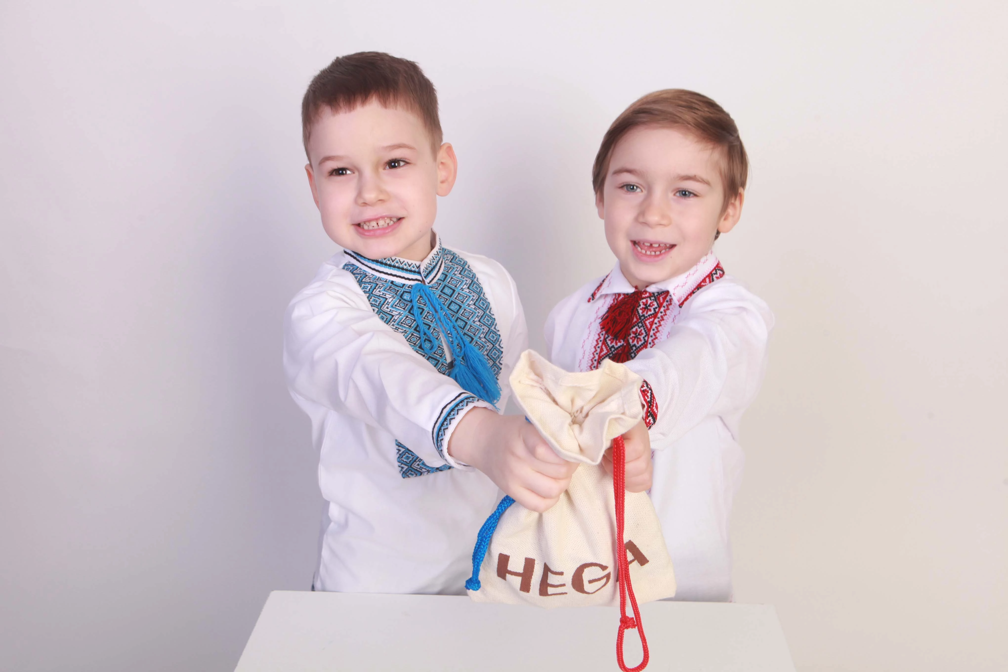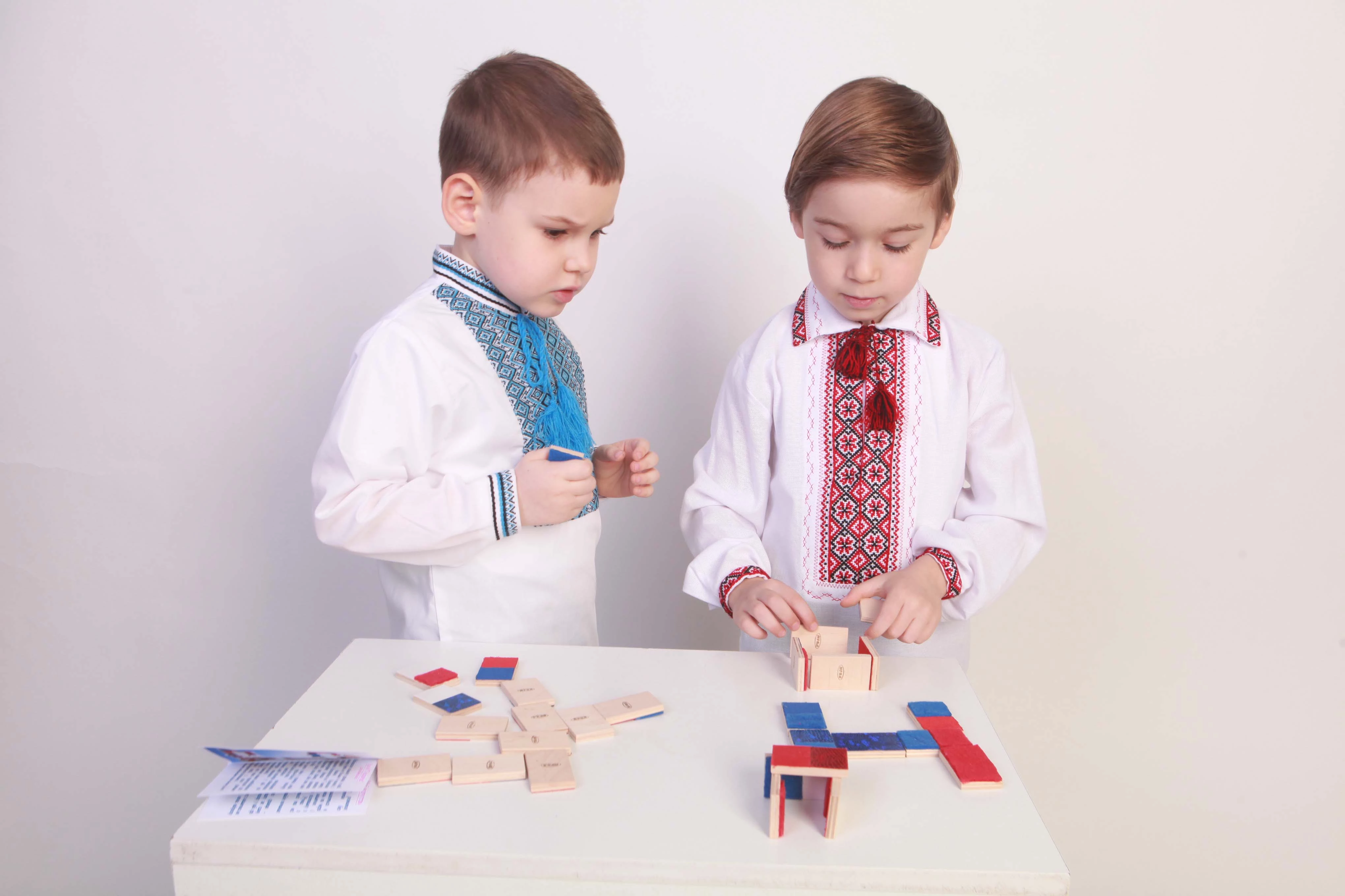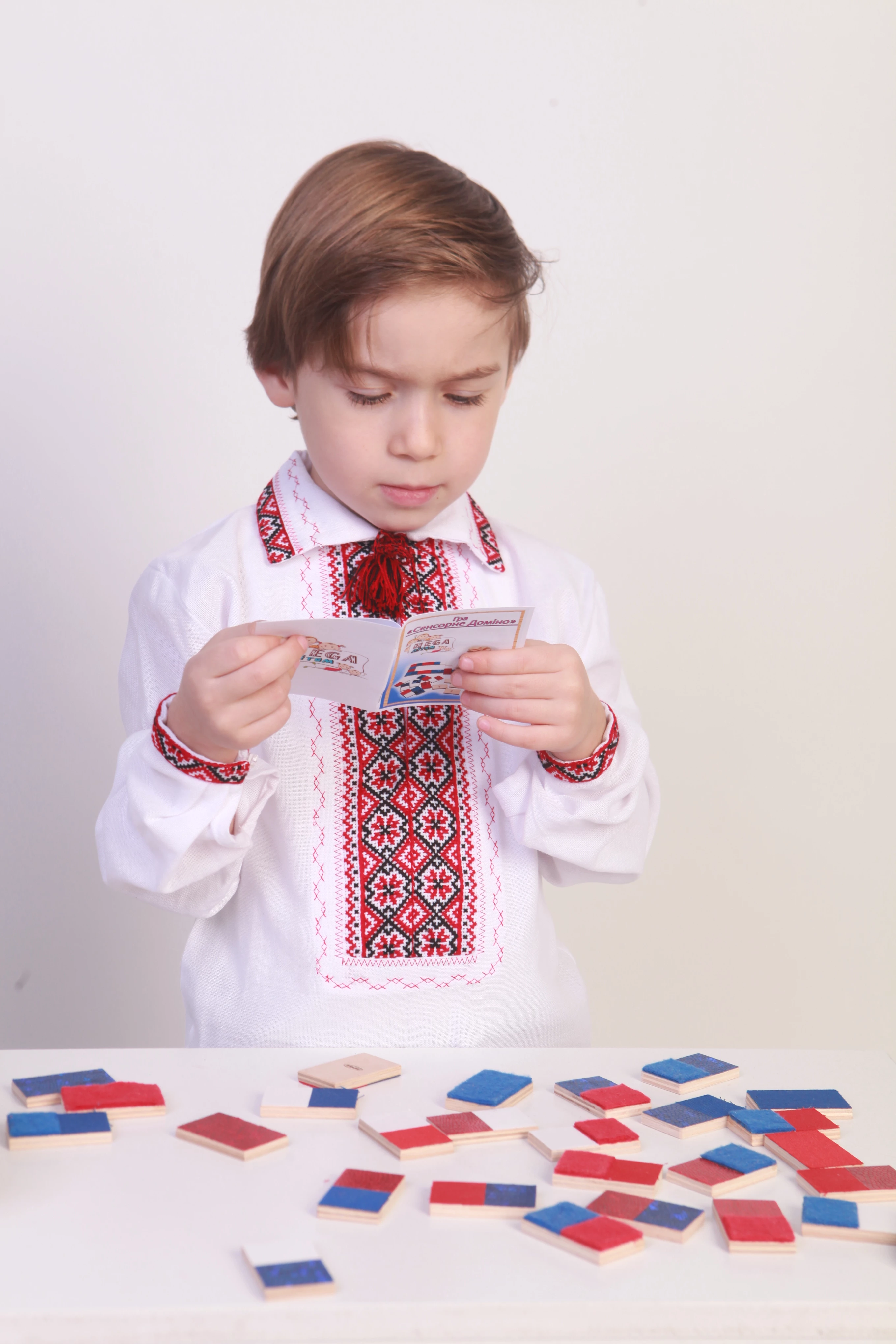 Игра от торговой марки Hega поставляется в полотняном мешочке с затяжками. Наборы фактур тканей на элементах домино не повторяются. В комплекте также присутствуют костяшки-дубли, имеющие одинаковую фактуру. В различных комбинациях использовано семь различных материалов.