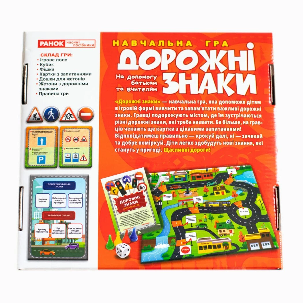 Данная обучающая игра предназначена для того, чтобы помочь ребенку в игровой форме освоить базовые правила дорожного движения и запомнить ключевые дорожные знаки. Для лучшего усвоения материала рекомендуется играть несколько раз подряд. Несложные правила игры подробно описаны в цветной инструкции, входящей в комплект.