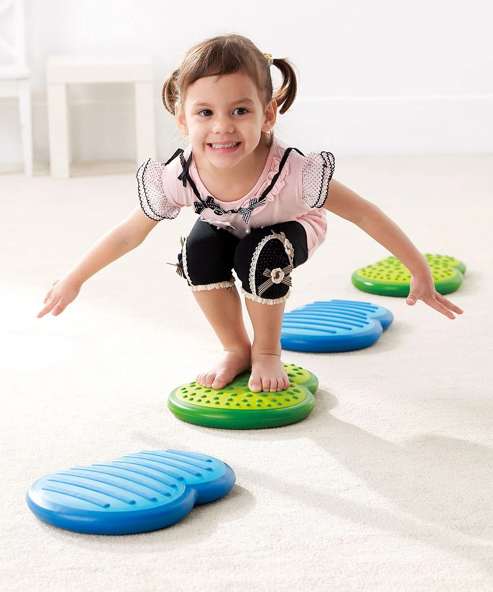 Необычная развивающая игрушка с рифленой поверхностью, которая способствует физическому развитию ребенка, тренирует мышцы ног, учит его держать равновесие и координировать движения. Передвигаясь по диску ребенок массирует ножки. Игрушка способствует развитию тактильных ощущений, сенсорного восприятия. Выполнена из качественных безопасных материалов.