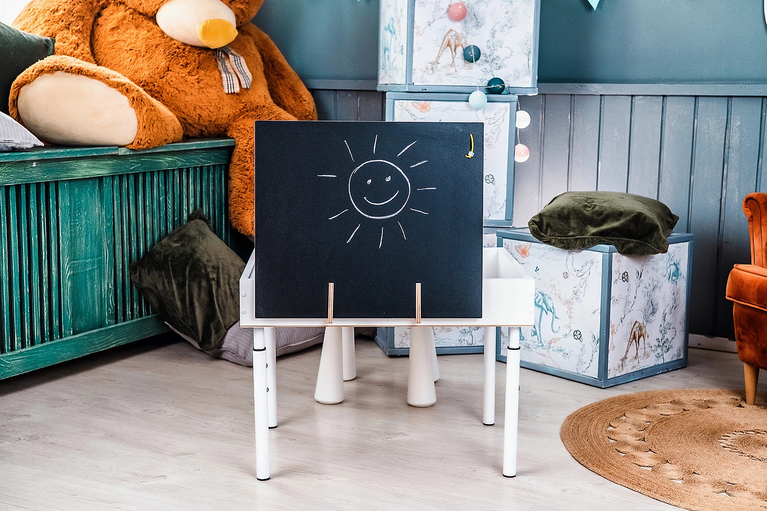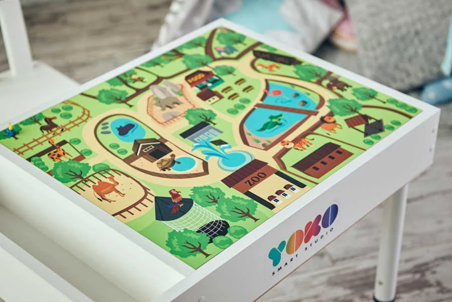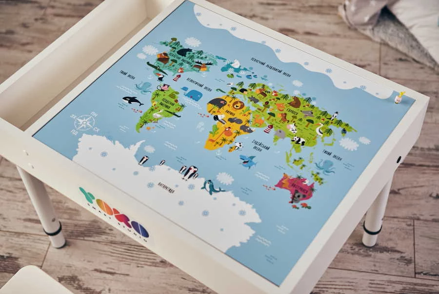 Данная двусторонняя крышка предназначена для использования со световым столом. Она имеет две поверхности, варианты которых можно выбирать. Это могут быть игровые поля по типу "Азбуки", "Фермы", "Карты мира" (до 10 видов), а также поля для игр в LEGO. Есть вариант сделать поверхность маркерной, для мела или маркерно-магнитной. Крышка будет использоваться не только закрытия отсеков с песком, но и обе ее стороны можно использовать в качестве столешницы, осталось только выбрать необходимые поверхности.