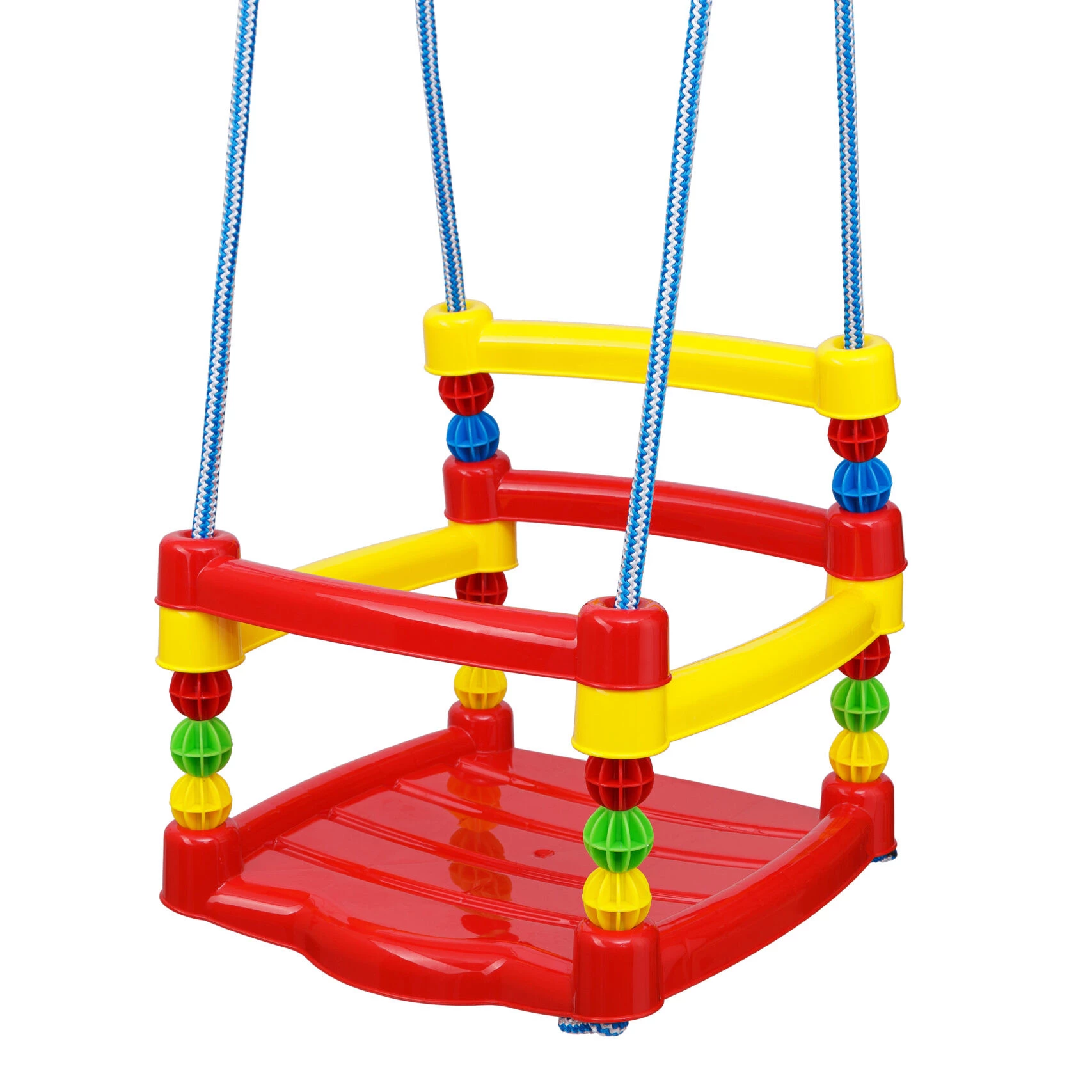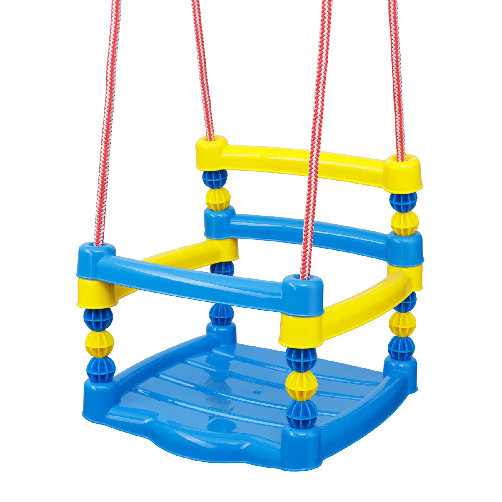 Детская пластиковая подвесная качеля имеет защитную конструкцию, что гарантирует безопасность вашего ребенка. Изделие выполнено в ярких цветах, что делает данную качелю привлекательной для детей. Данная модель ориентирована на детей младшего возраста, поэтому оборудована боковыми и передними ограждениями, предотвращающими падения.