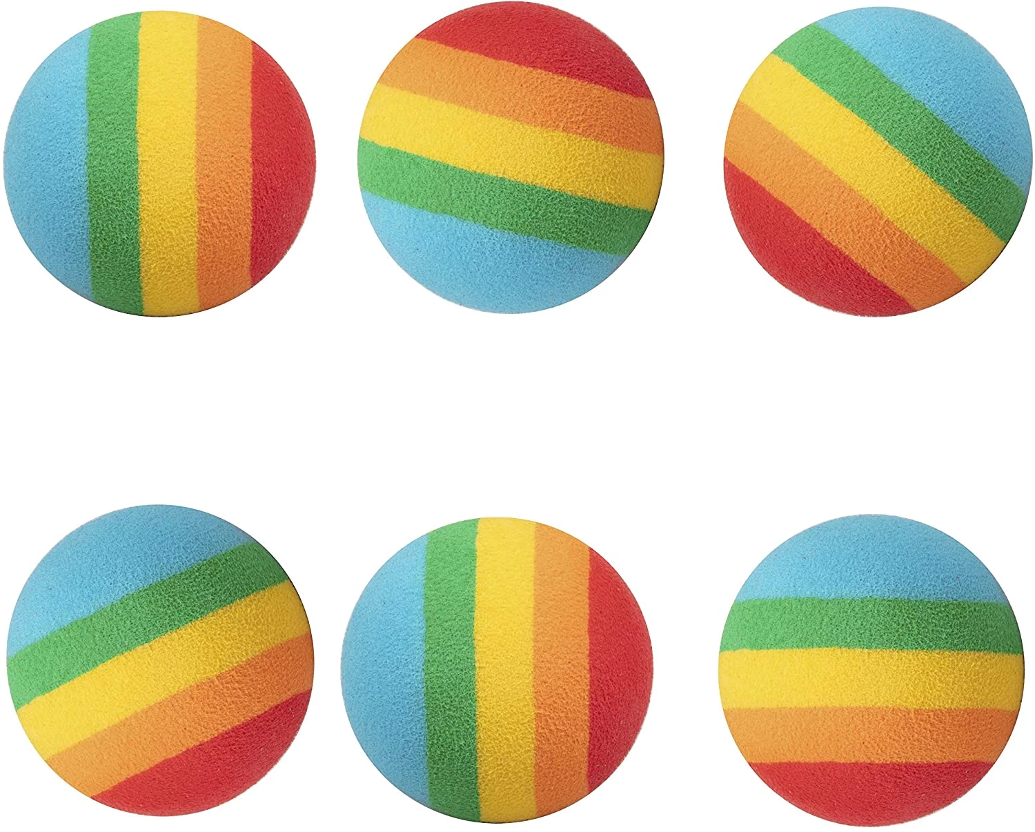 В наборе 6 мячиков из мягкой пены цвета радуги.