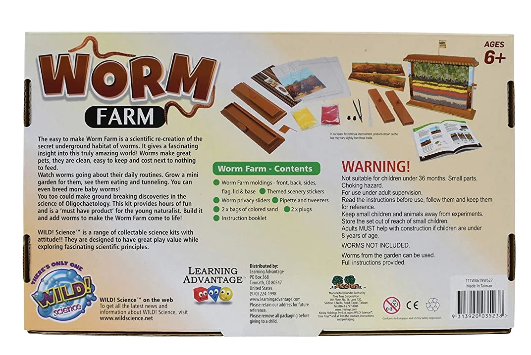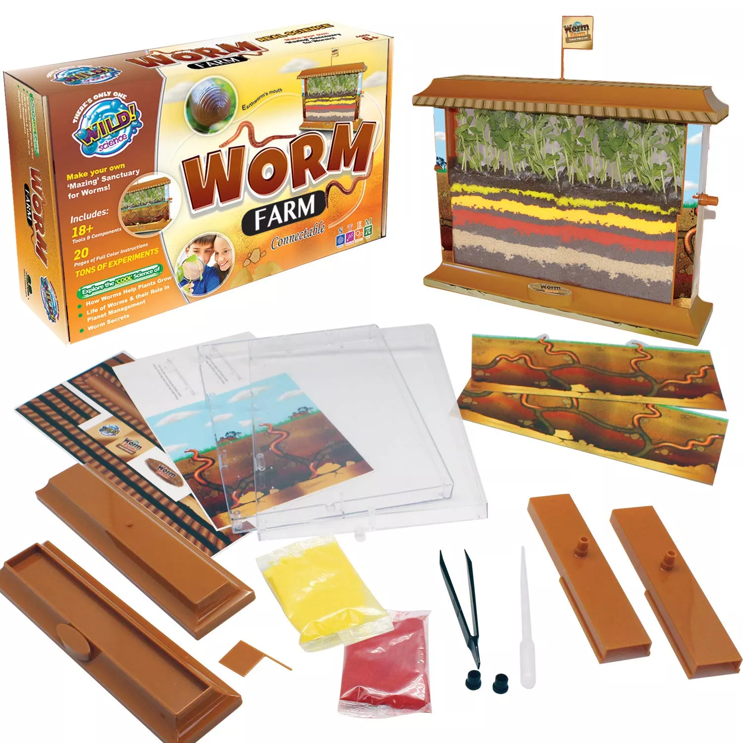 Включает все необходимое для создания мини фермы! Засыпьте ферму землей и песком, поймайте червей и наблюдайте, как они живут. Вы даже можете выращивать семена для маленького сада червей!