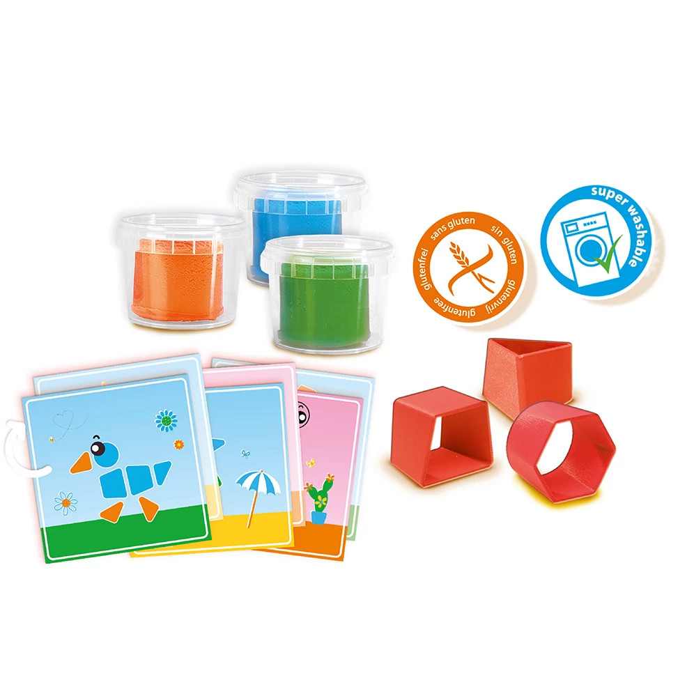 Представленная масса для лепки не засыхает во время игры, длительный период времени остается мягкой, ее следы на одежде и других нежелательных местах легко отстирываются.