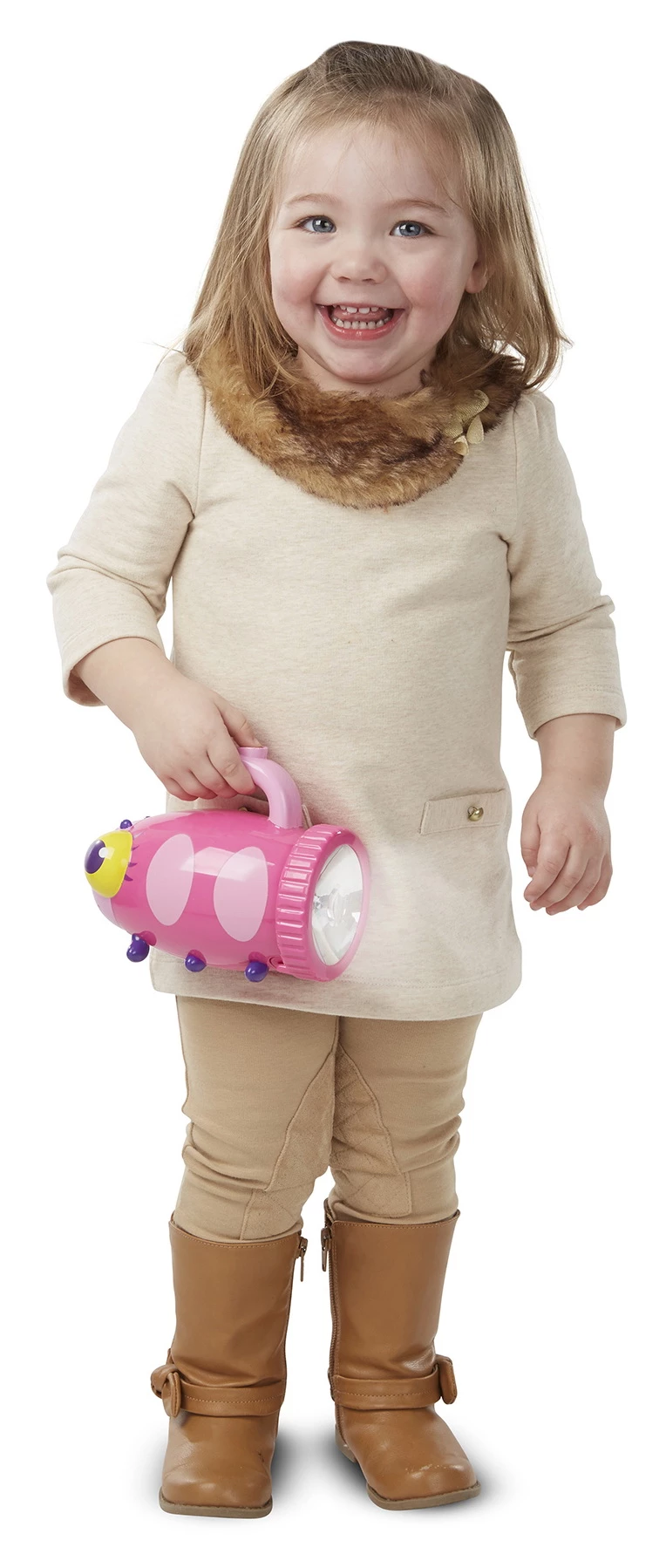 Собственный фонарик просто необходим ребенку, ведь дети так любят играть с вещами взрослых. Прибор выполнен в виде божьей коровки в розовом цвете, он имеет интересный внешний вид и комфортную ручку. Лампа обеспечивает стабильный свет, напоминающий прожектор. Фонарик можно брать с собой в поход или же устраивать театр теней у себя в комнате. Он имеет оптимальные размеры, чтобы ребенок мог его спокойно носить в руках, но при этом не потерять.