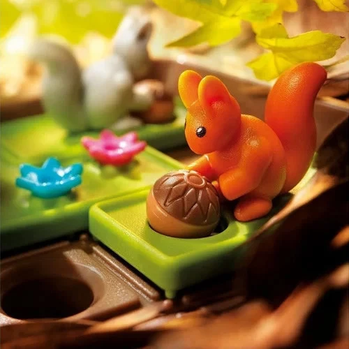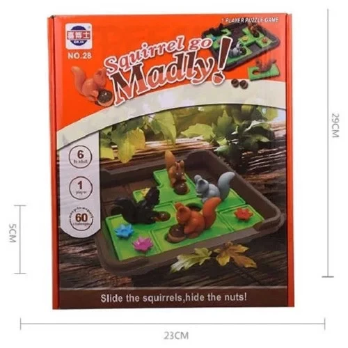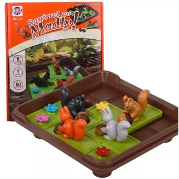 Увлекательная настольная игра, которую удобно брать с собой в поездки и путешествия. Разместите белочек и орешки на игровое поле, как показано в буклете. Перемещайте белок по горизонтали или вертикали, чтобы все орехи попали в отверстия. Задания разной степени сложности. Можно начать с простых и постепенно переходить к более сложным задачкам. Это отличный тренажер для развития у детей логики и пространственного мышления, навыков планирования, концентрации, решения проблем.
