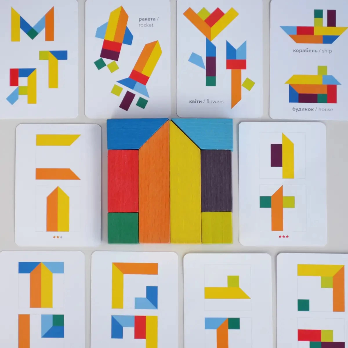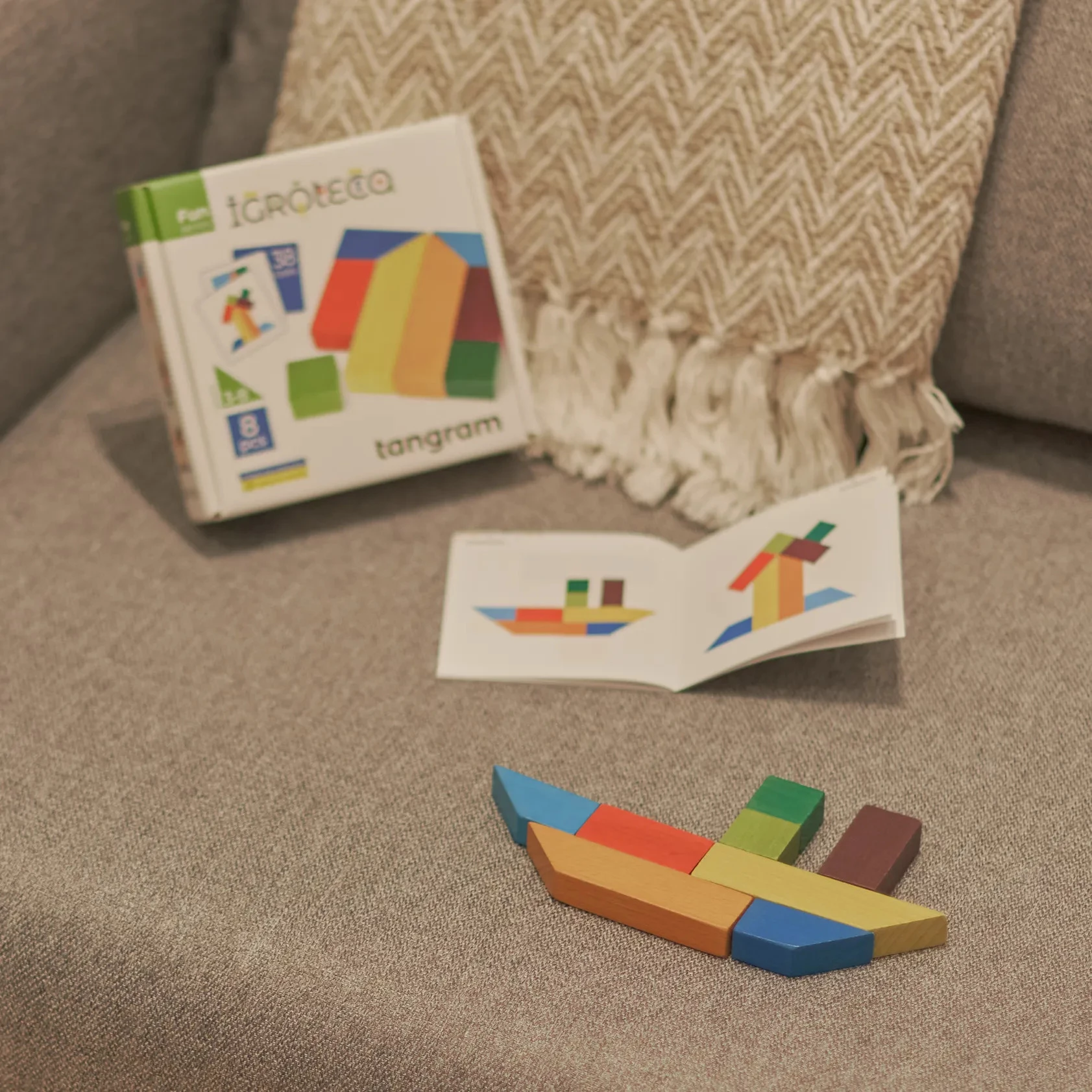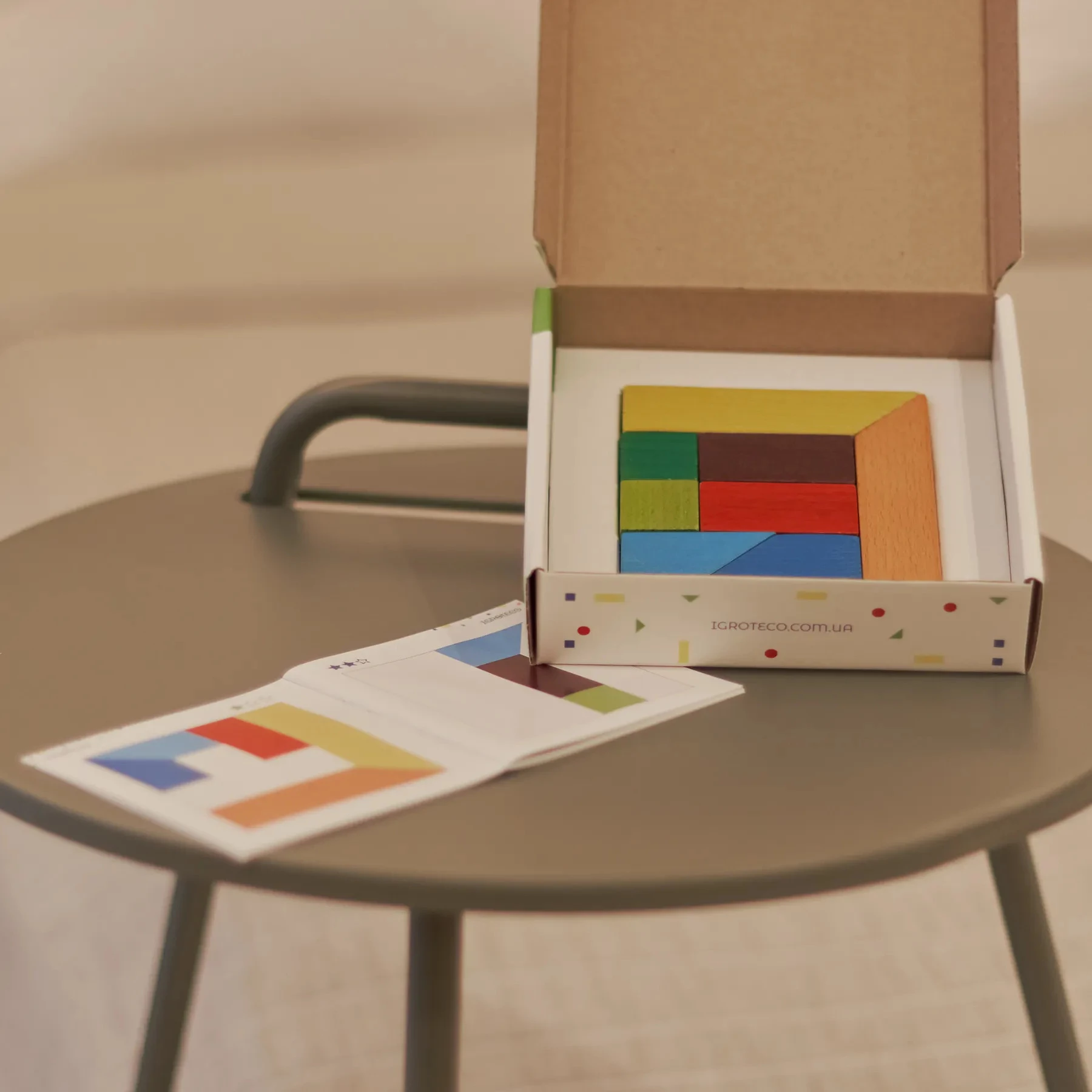 Развивающая игрушка Танграм — это интересная головоломка, сочетающая игру для развития логики и мозаику, поэтому дети долго не потеряют интерес к данному игровому набору.