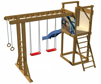 Это мечта любого ребенка на которой можно кататься, лазить, висеть проявлять свою фантазию и активно развиваться. Модель этой площадки направлена не только на весёлое времяпровождение, но и на правильное физическое развитие. Множество лестниц, качели, горка, подвесные кольца-это все то, что увлечет ребенка в активную игру, и поможет в увлеченном занятии проработать все группы мышц и предотвратить появления плоскостопия.