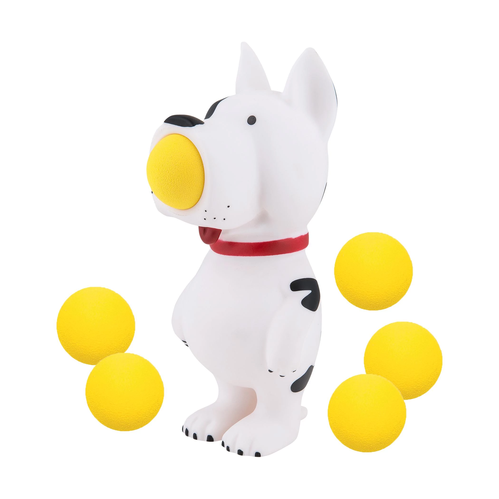 Готов, целься, поп! Сожмите живот игрушечной собаки, чтобы выстрелить мягким пенопластовым шариком!