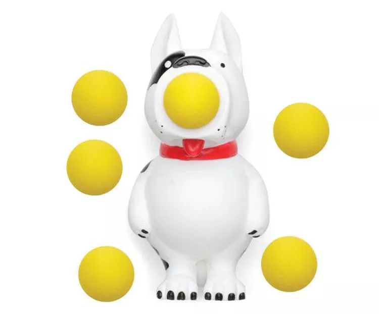 Чем сильнее нажимать живот собачки, тем быстрее и дальше стреляет шарик!