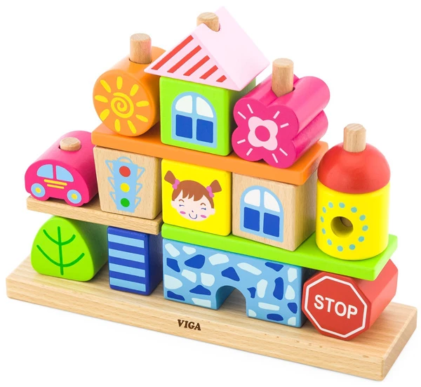 Набор кубиков "Городок" - деревянный конструктор из больших ярких деталей в виде домиков, крыш, арок и цилиндров. Идеален для первых строительных игр. Помогает развивать пространственное мышление, координацию и воображение.
