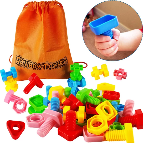 Развивающий набор «Болты и гайки» (40 шт) – учебный набор, знакомящий малыша с цветами и формами через практическую деятельность. Ребенок будет совмещать детали по цвету и форме, развивая мышление, моторику и навыки сортировки.