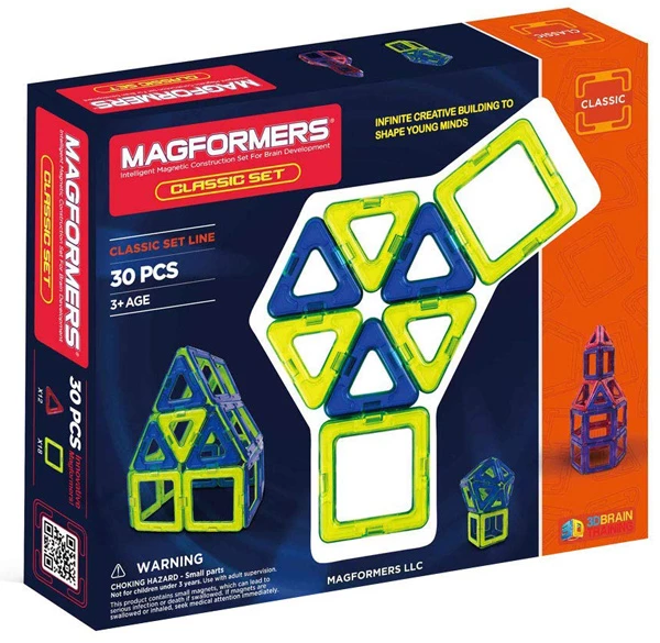 Магнитные конструкторы, такие как Magformers – это яркие детали, легко соединяющиеся между собой. Благодаря простой технологии дети строят как 2D-, так и 3D-фигуры, тренируя воображение, координацию и логическое мышление.