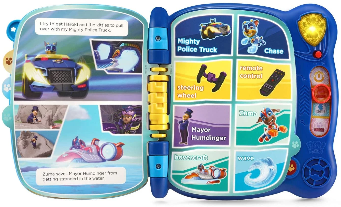 Интерактивная книга содержит в себе несколько страниц и рассказывает историю о нападении суперкотят. "Щенячий патруль" как всегда готовы защищать своих друзей, потому их ожидают настоящие приключения. Книга говорит голосом Чейза и Райдера. Дети погрузятся в атмосферу мультика благодаря четырем заданиям и трем игровым режимам: исследование, музыка и рассказ. Ребенок сможет изучить около сорока новых английских слов. Слушайте мелодии и добавляйте забавные звуковые эффекты из шоу во время истории, исследуя интерактивные страницы.