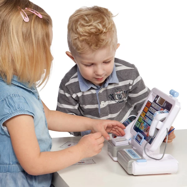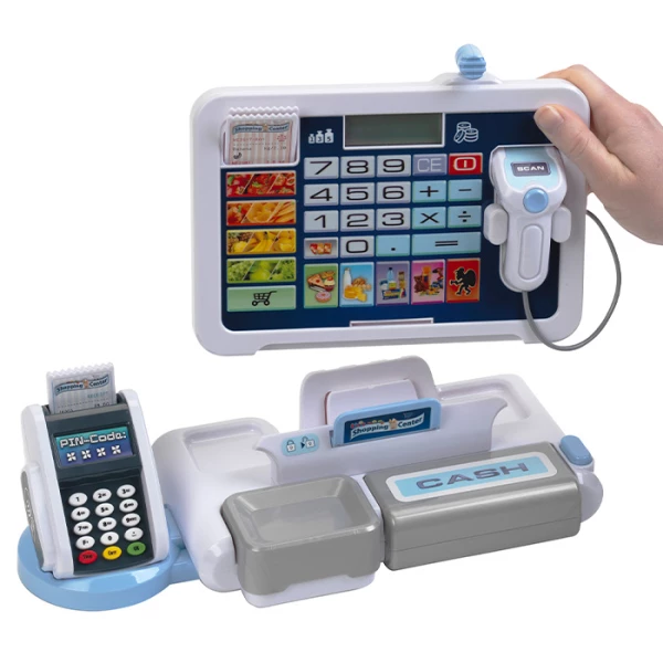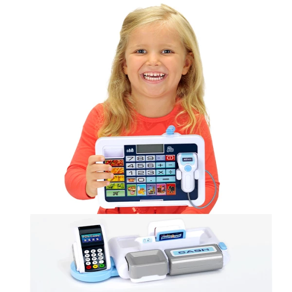 Игрушка порадует маленьких фантазеров своими игровыми возможностями: можно сканировать игрушечные товары, вносить их стоимость на электронном дисплее, после чего, точно рассчитать сумму покупок при помощи встроенного калькулятора. Мало товаров на прилавке? Нет проблем! Воспользуйтесь планшетом, чтобы просканировать пустые места, чтобы «заказать» новые товары — все, как в настоящих торговых точках.