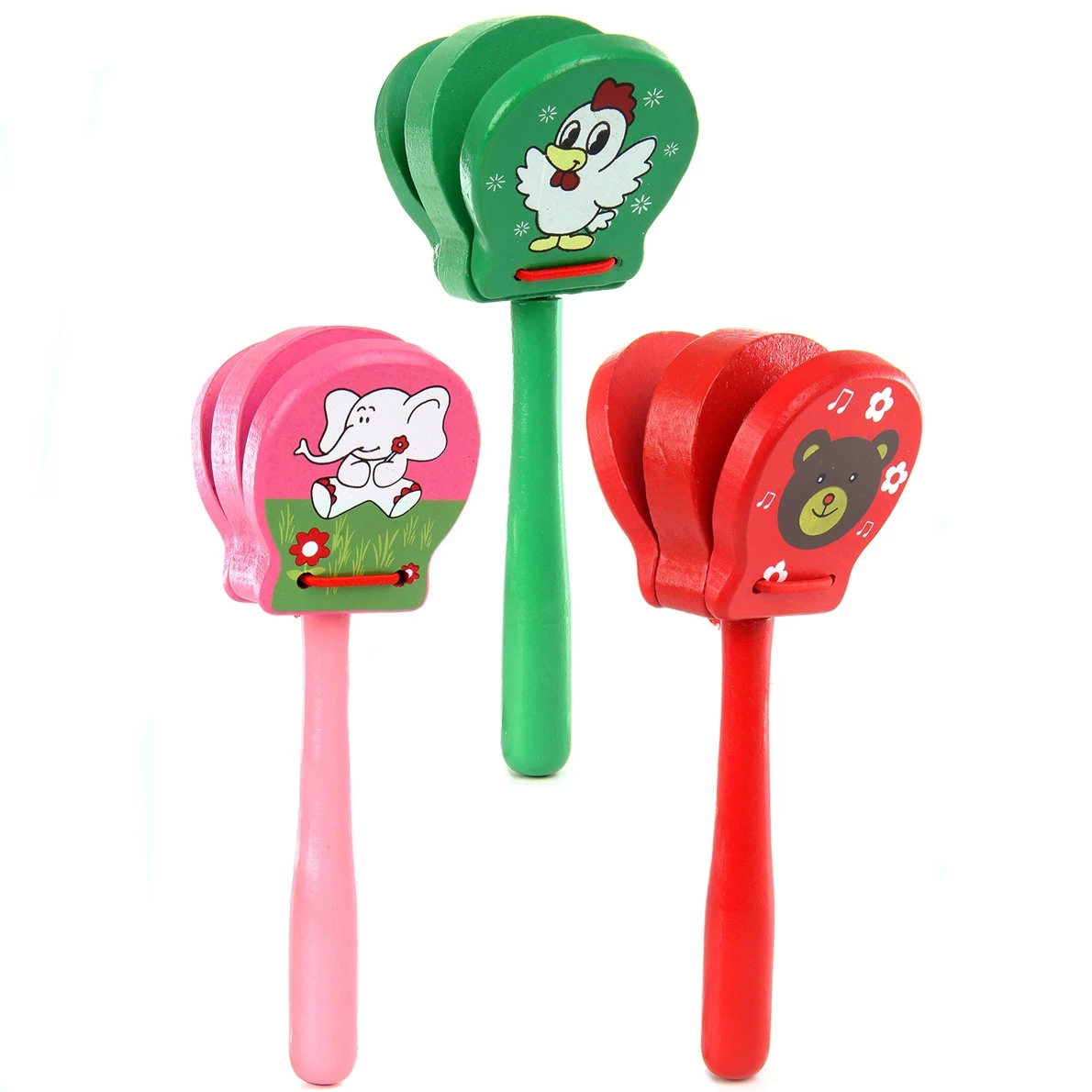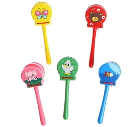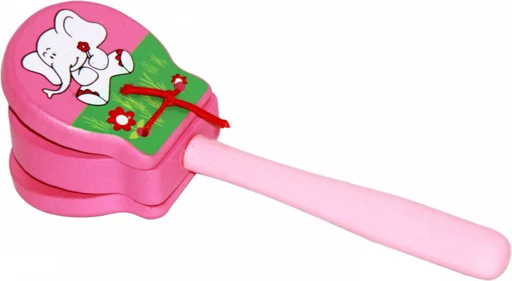 Если вы хотите порадовать кроху интересной музыкальной игрушкой, то обратите внимание на кастаньеты «Руди», произведенные в Украине из экологически чистых материалов. Эта игрушка принадлежит к числу ударных инструментов. Она состоит из основы с ручкой, к которой присоединена пара деревянных пластин, соединенных прочным шнурочком. Игрушка выполнена в розовых тонах и украшена симпатичным рисунком, изображающим слоненка. Малышу наверняка придется по вкусу внешний вид его первого музыкального инструмента!